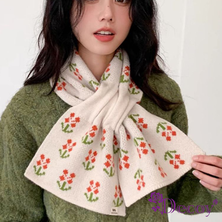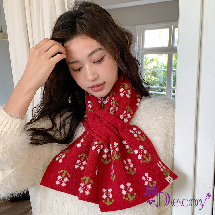 【Decoy】甜美四瓣花*加厚交叉固定保暖圍巾/紅