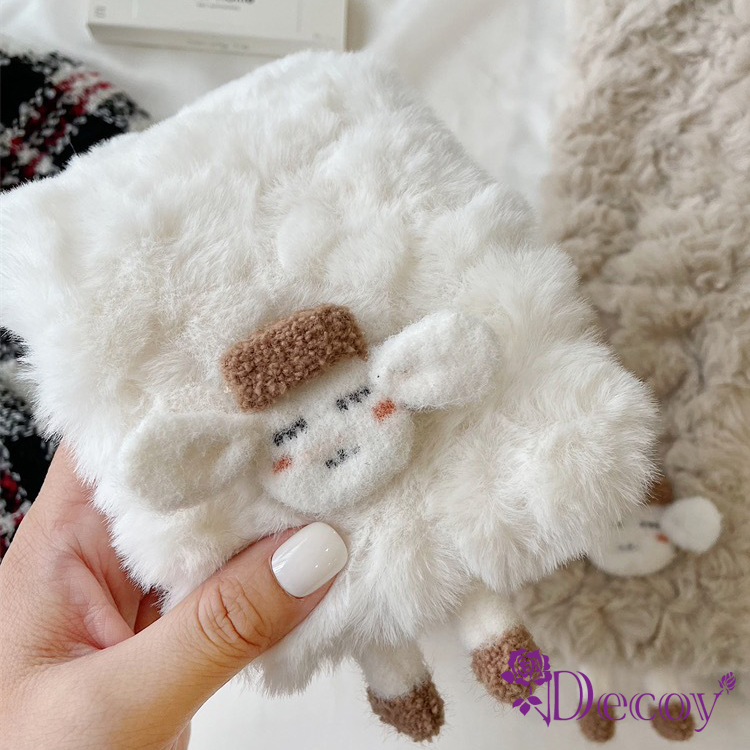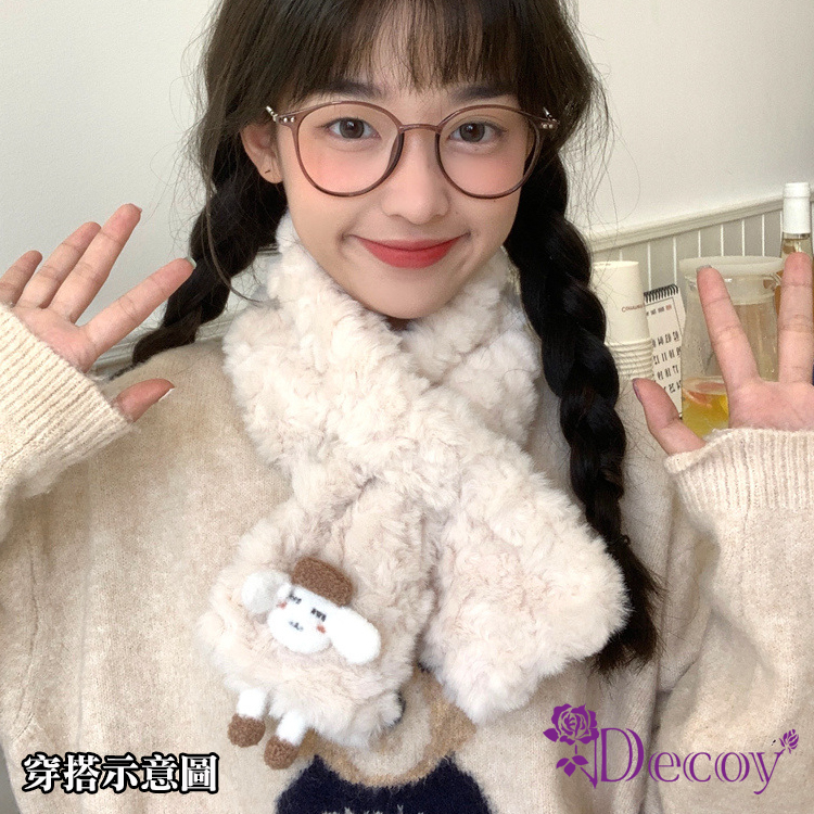 【Decoy】小羊玩偶*保暖仿兔毛絨交叉脖圍圍巾/米