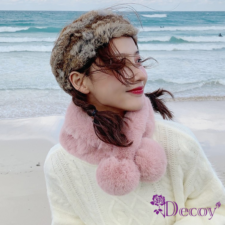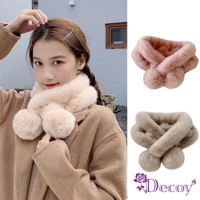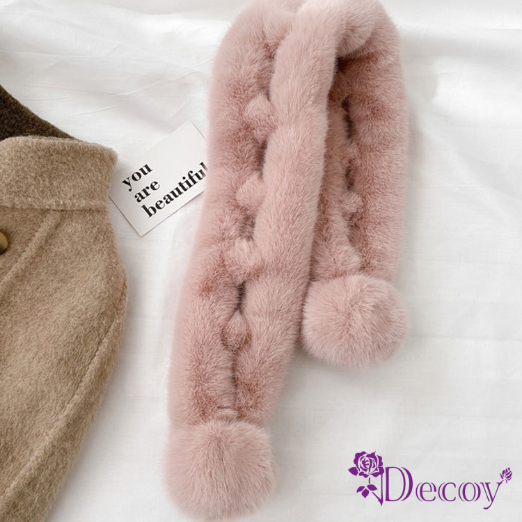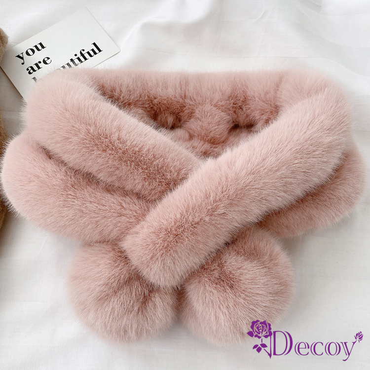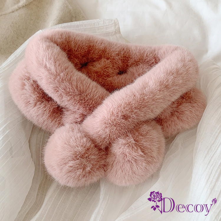 【Decoy】胖胖軟糯*保暖仿兔毛絨交叉脖圍圍巾/粉