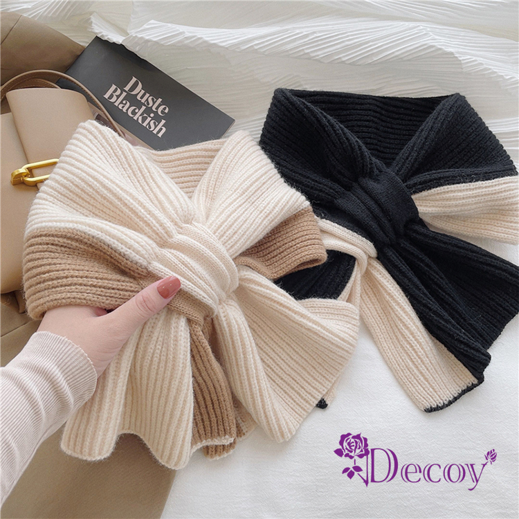 【Decoy】雙色蝴蝶結*保暖針織輕巧脖圍圍巾/米灰