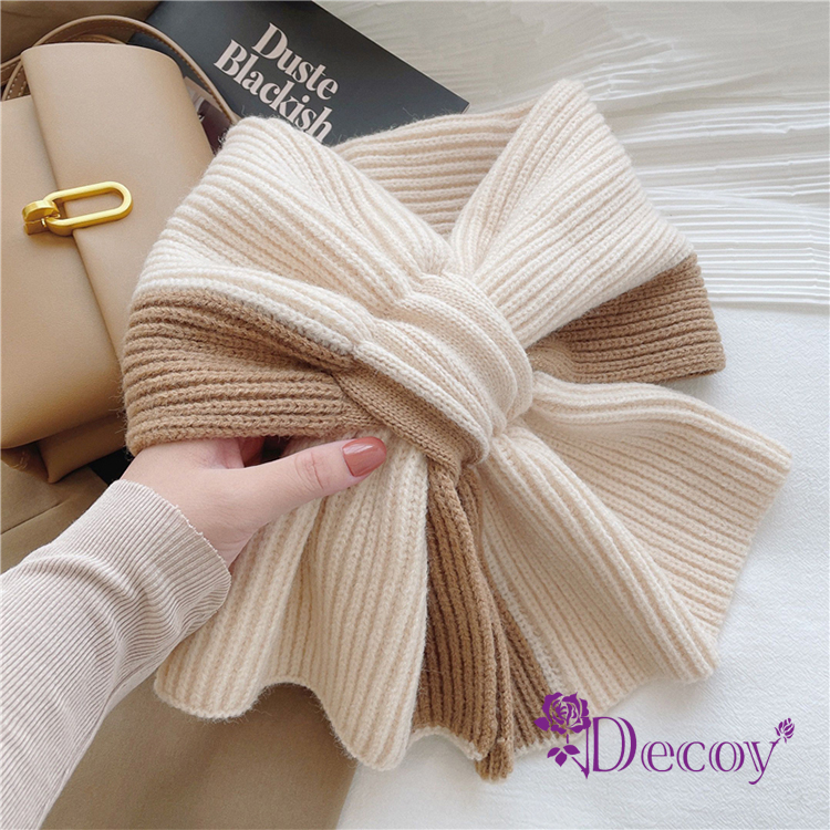 雙色拼接蝴蝶結造型圍巾,加厚保暖力更升級,