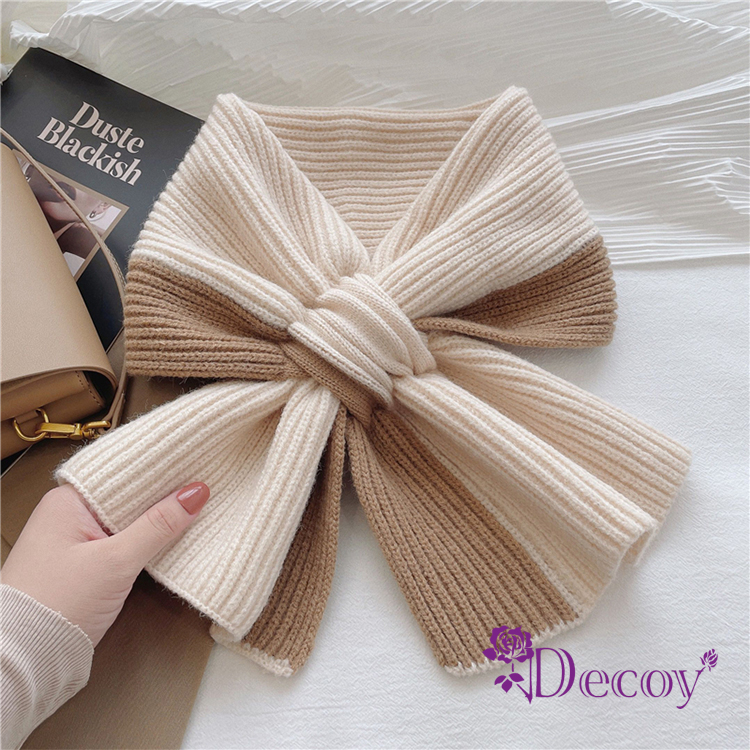 【Decoy】雙色蝴蝶結*保暖針織輕巧脖圍圍巾/米卡其