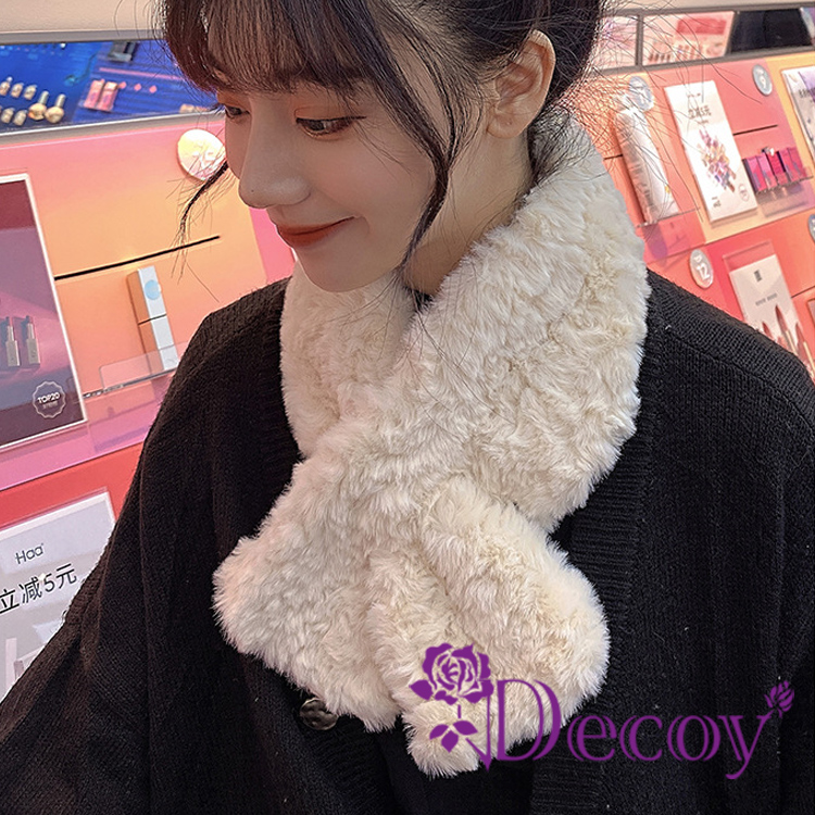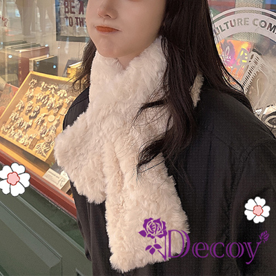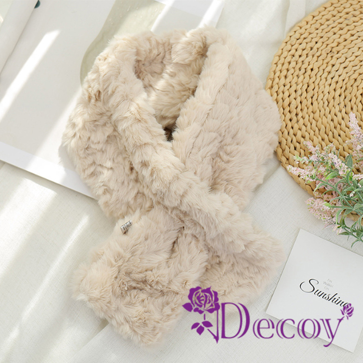 【Decoy】韓版百搭 仿瀨兔毛加厚保暖交叉毛絨脖圍圍巾/杏色