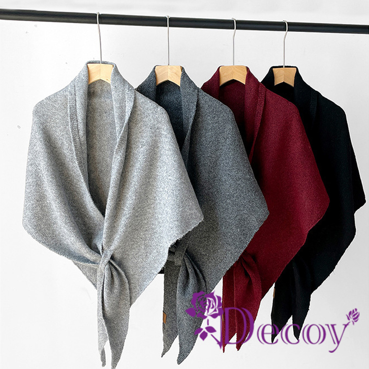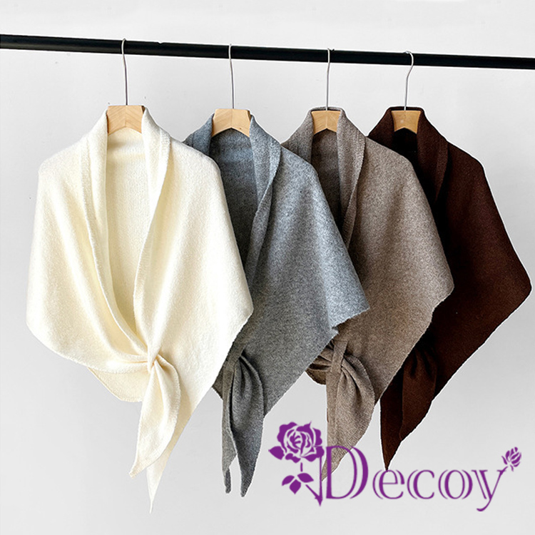 【Decoy】慵懶交叉 三角保暖仿羊絨披肩圍巾/駝色
