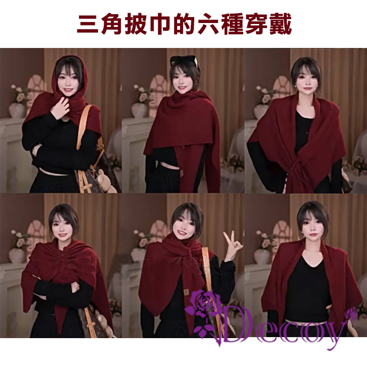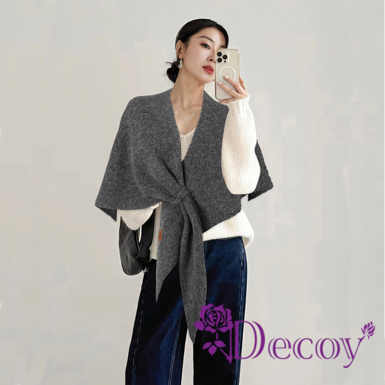 【Decoy】慵懶交叉 三角保暖仿羊絨披肩圍巾/深灰