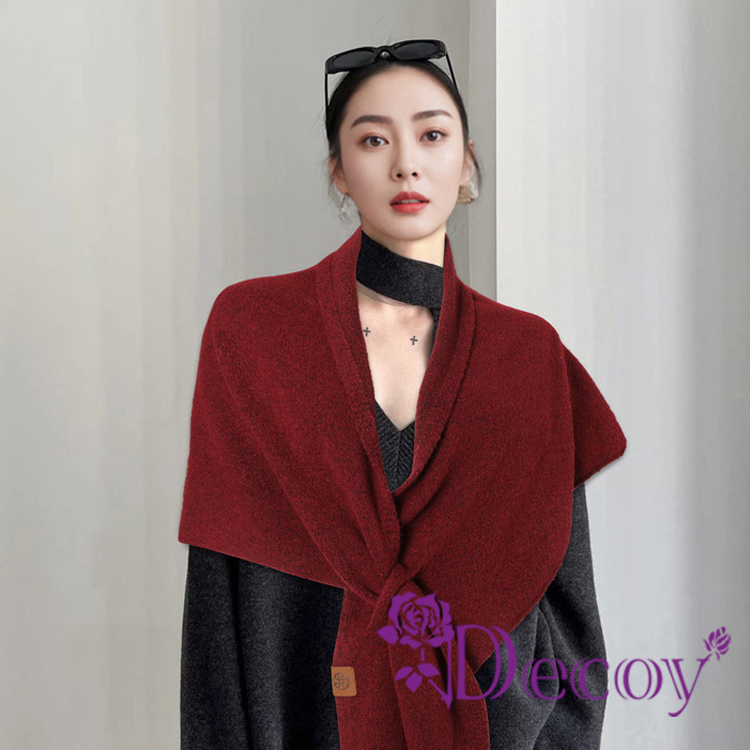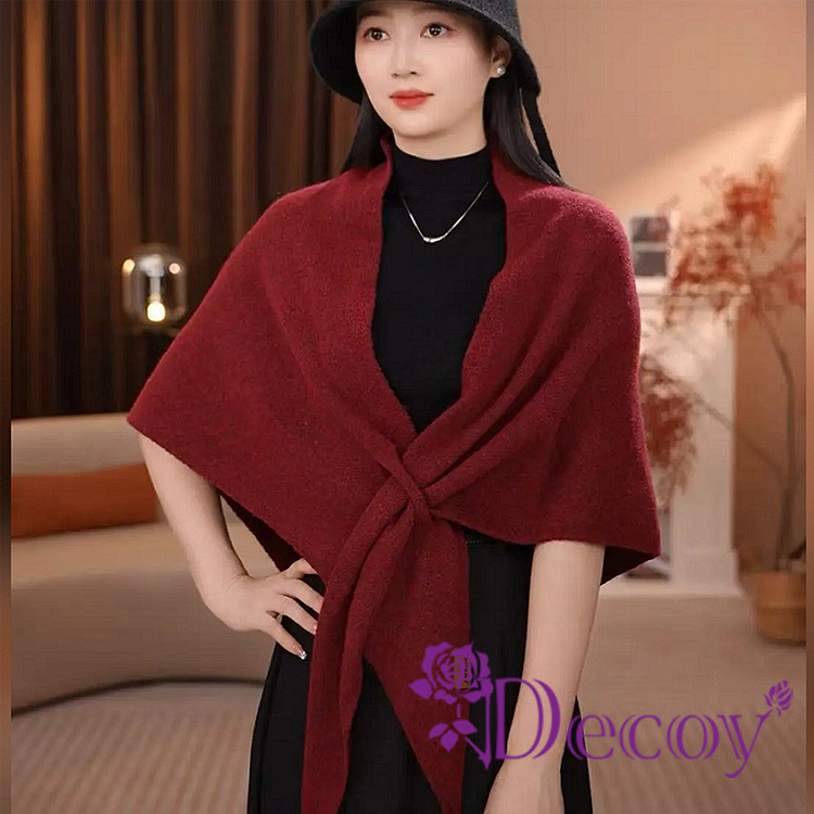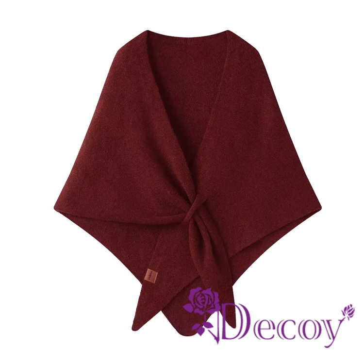 【Decoy】慵懶交叉 三角保暖仿羊絨披肩圍巾/酒紅
