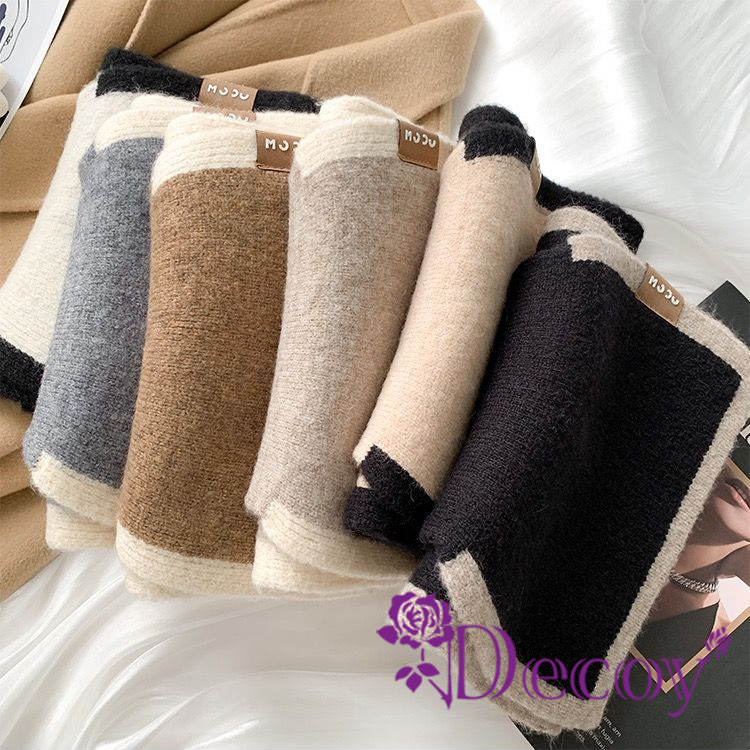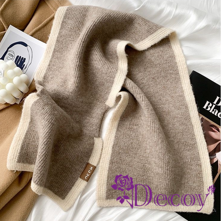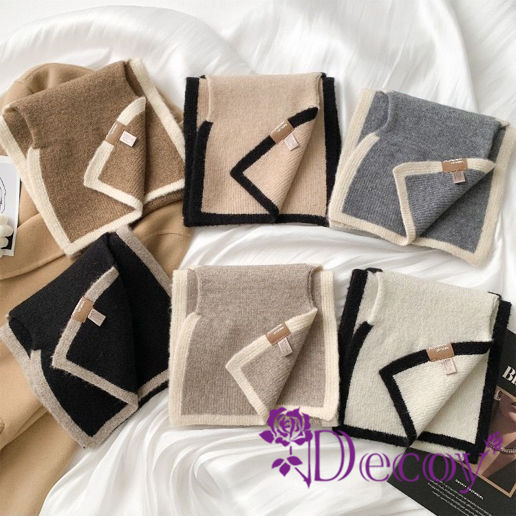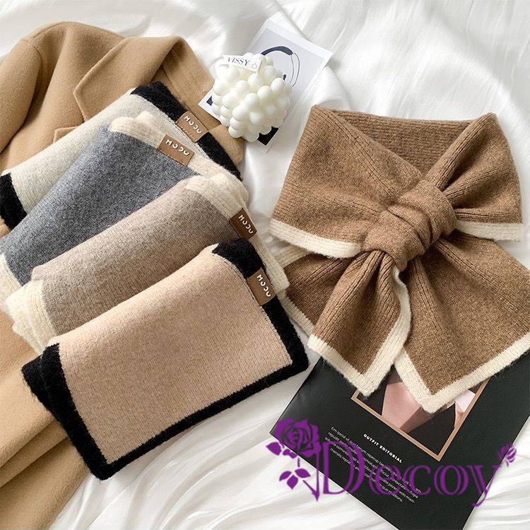 撞色線條框拼蝴蝶結造型圍巾,仿羊絨加厚保暖力更升級,
