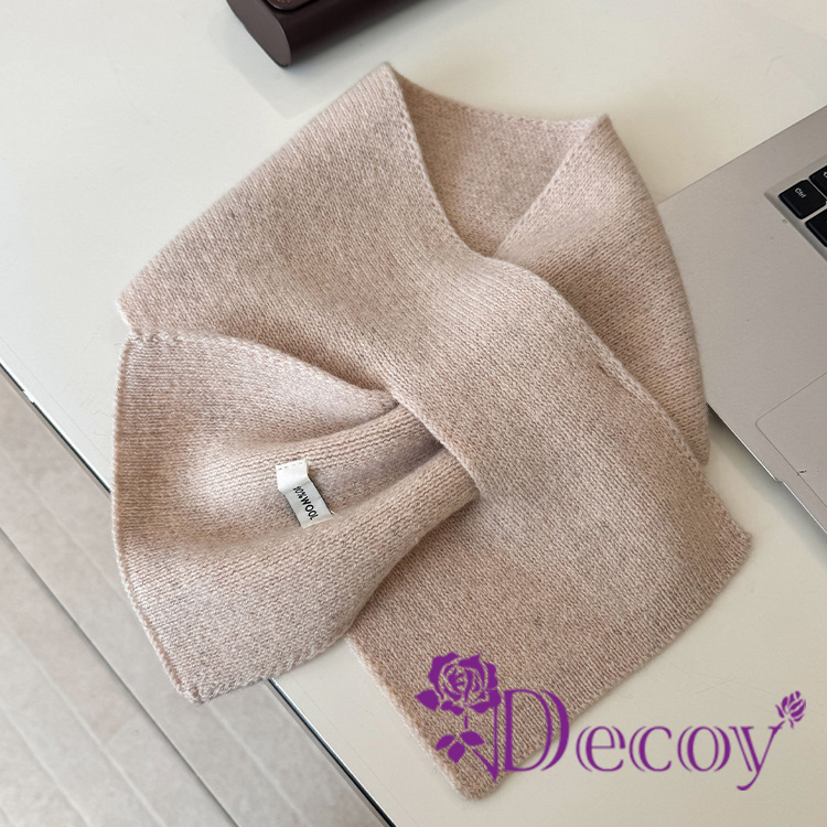 【Decoy】針織百搭 羊毛交叉圍脖小圍巾/米色