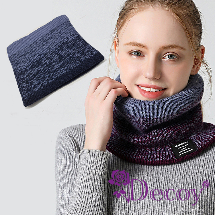 【Decoy】冬季保暖 加絨加厚漸變毛線針織百搭圍脖套/牛仔藍