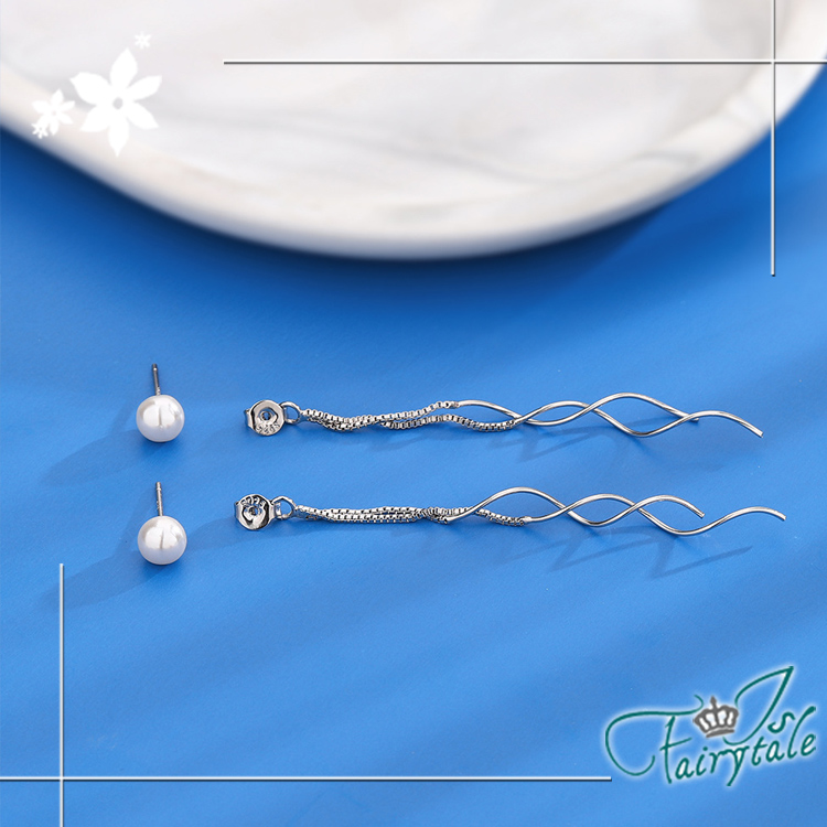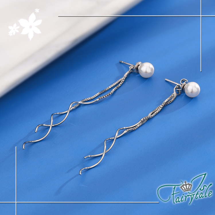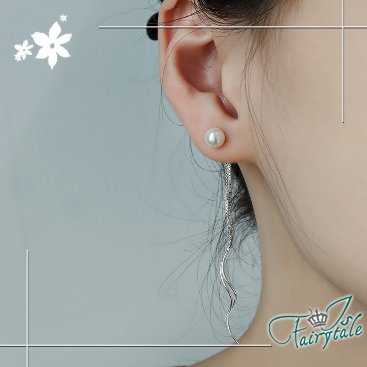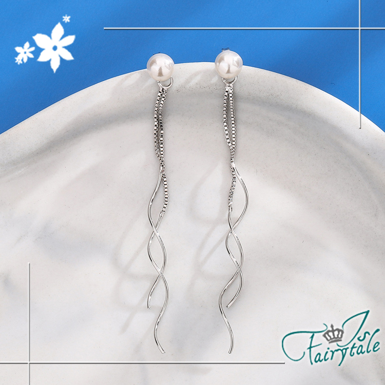 【伊飾童話】珍珠與浪 垂墜流蘇波浪銅電鍍銀耳環