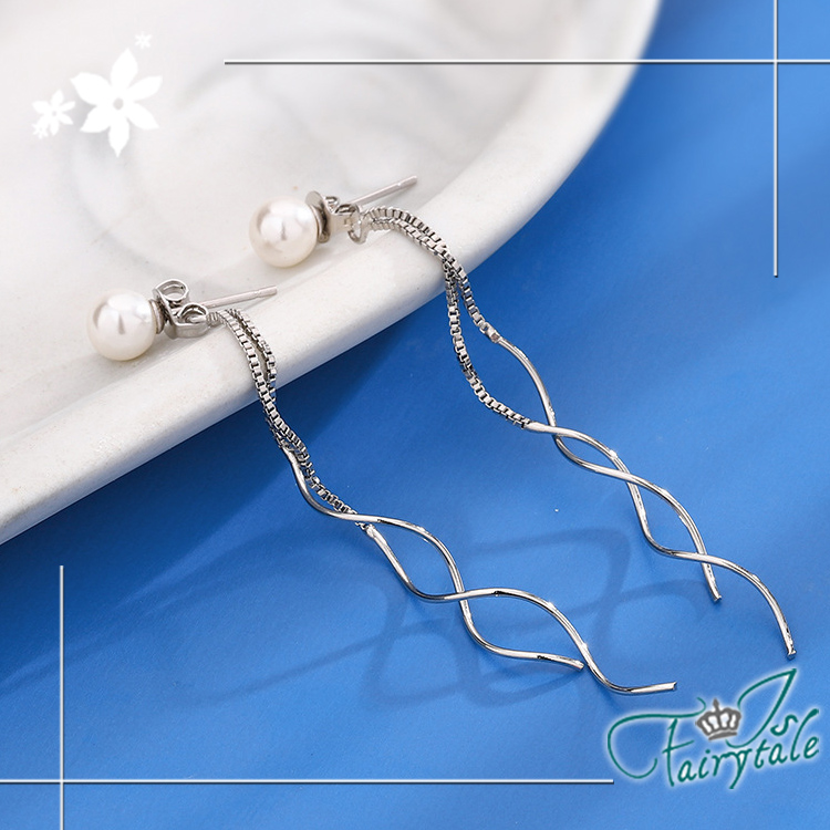 珍珠雙層波浪流蘇,時尚電鍍低過敏性耳針,