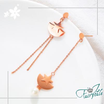 精緻工藝打造白鋼電鍍飾品,星星半月造型與珍珠點綴,
