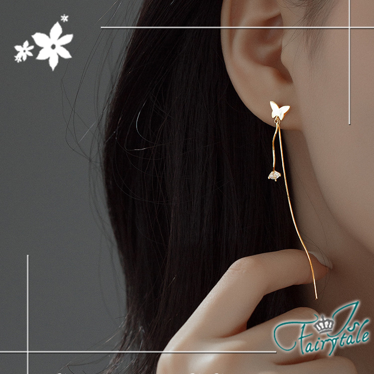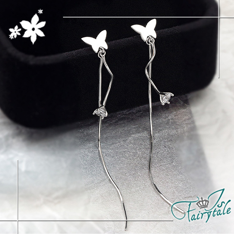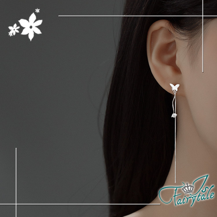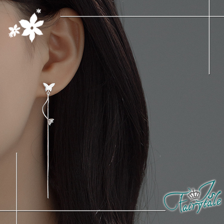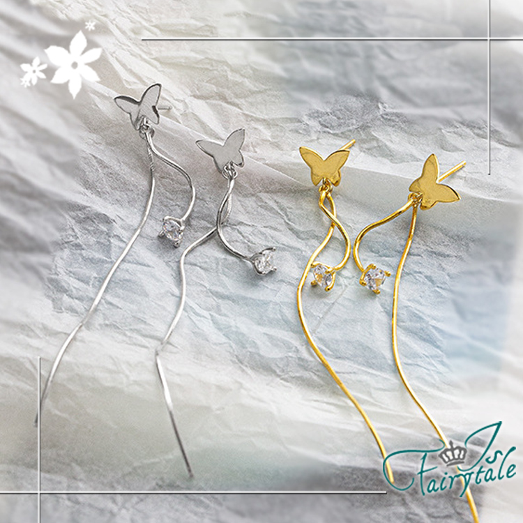 【伊飾童話】蝴蝶垂鑽 氣質長垂墜銅電鍍銀耳環
