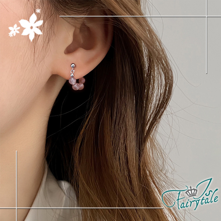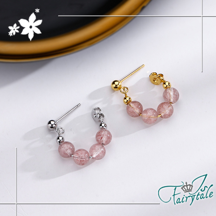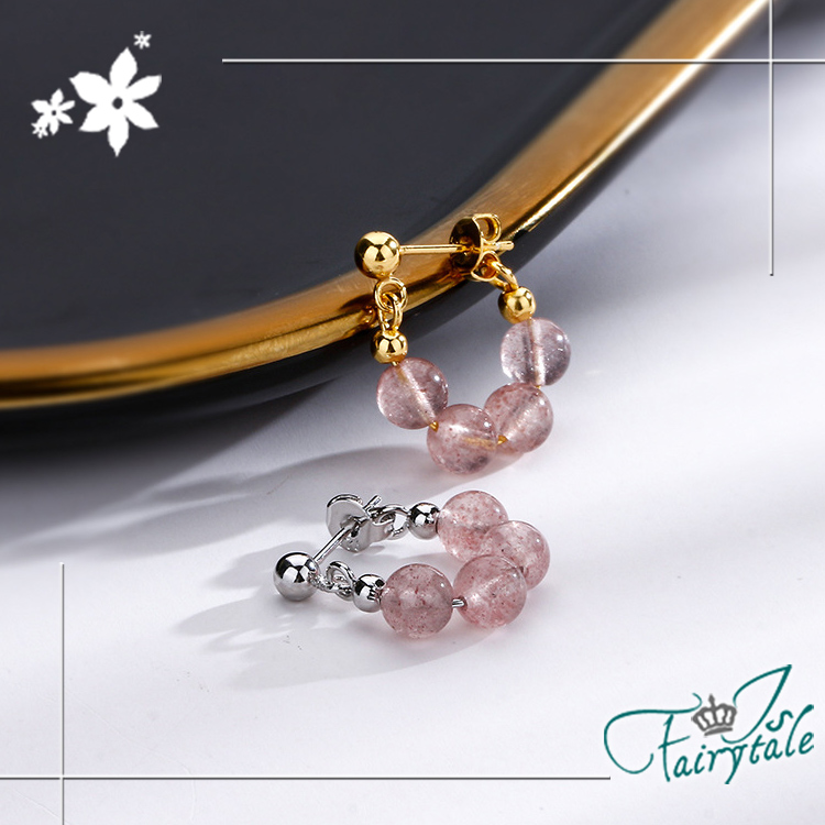 【伊飾童話】串珠礦石 典雅草莓晶圓珠圈圈耳環/銀