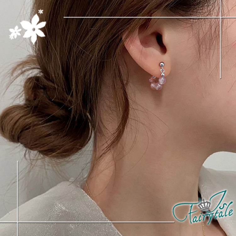 草莓晶圓珠圈圈耳環,淡雅的色彩可搭配出不同以往的風格,