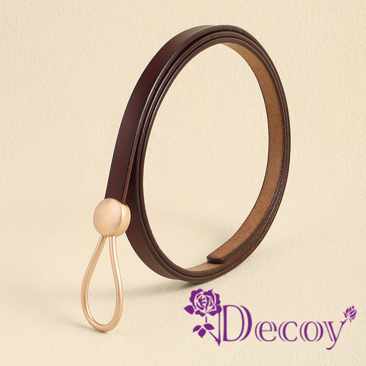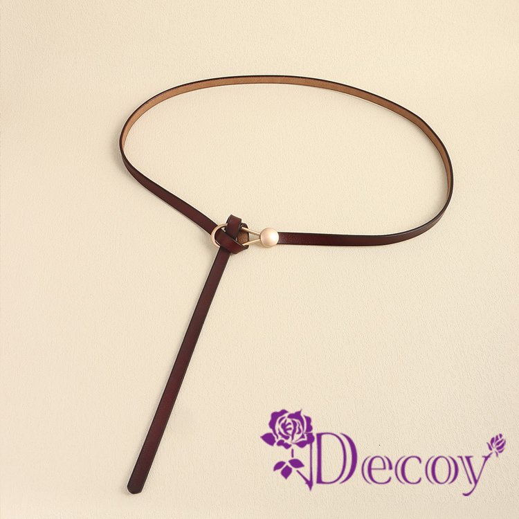 【Decoy】商務百搭 簡約真皮打結細皮帶/棕色