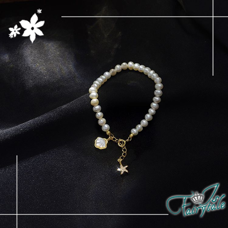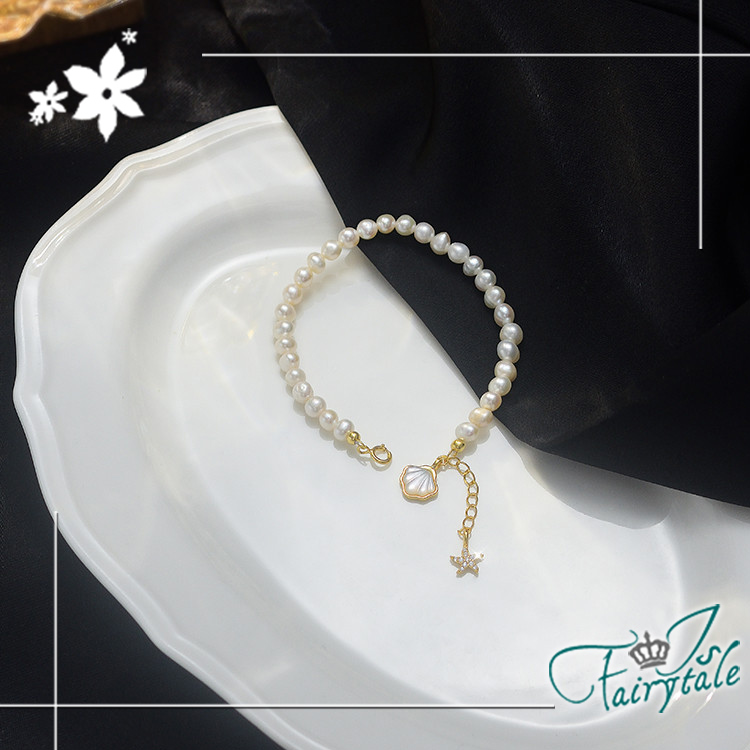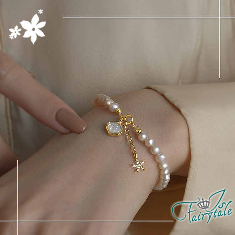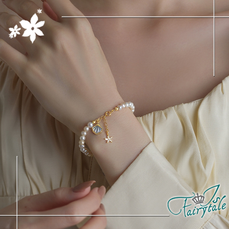 貝殼與海星水鑽,搭配優雅淡水珍珠,讓這款手鍊充滿清新與柔情,