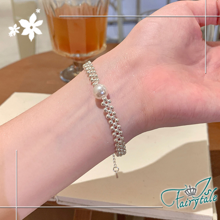 典雅珍珠交錯排列出三排手鍊,簡單卻華麗搶眼,