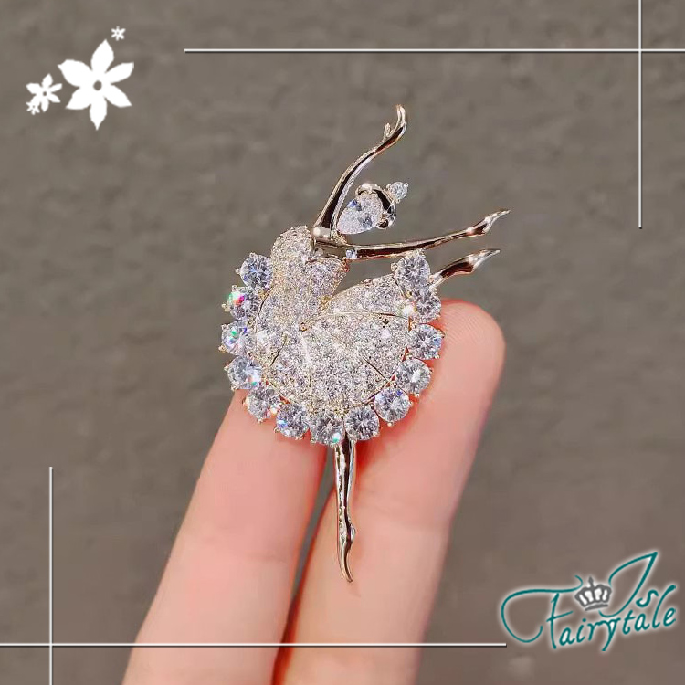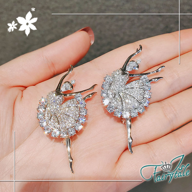 【伊飾童話】芭蕾舞者 水鑽搖曳裙擺胸針防走光別針/金色