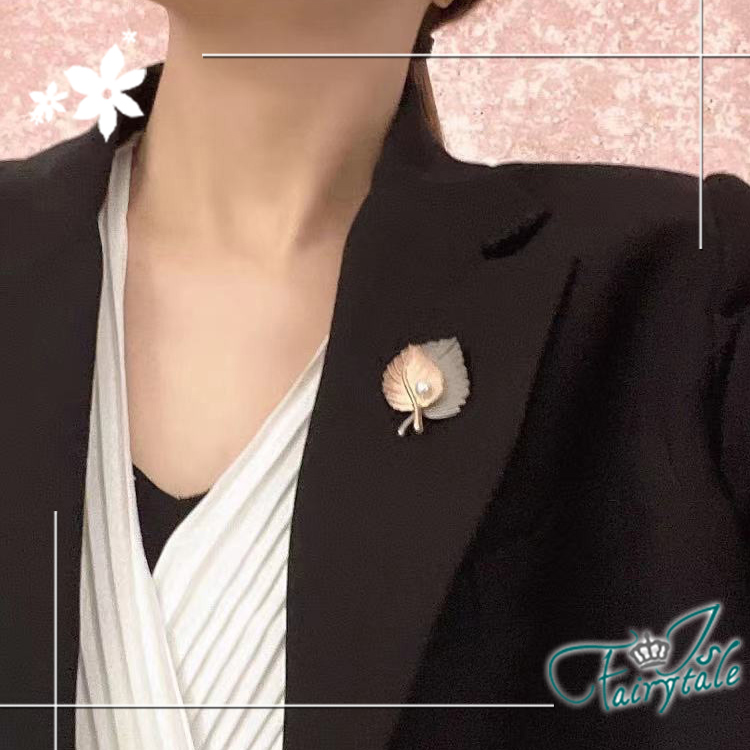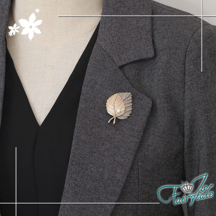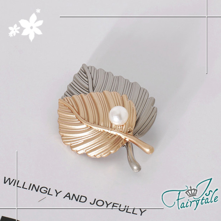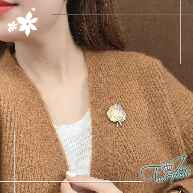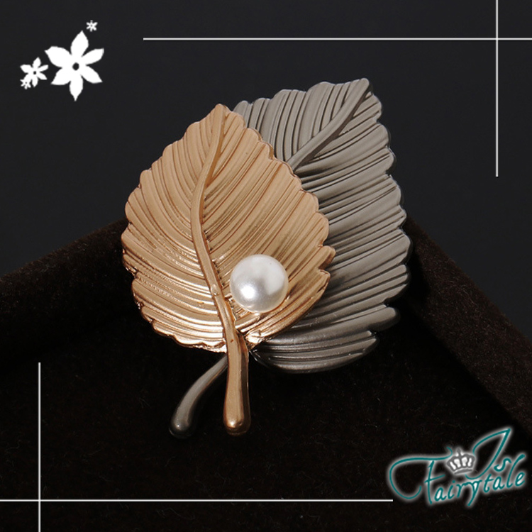 【伊飾童話】水珠葉片 雙層復古葉子珍珠細緻胸針別針