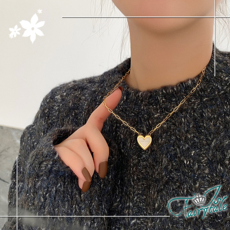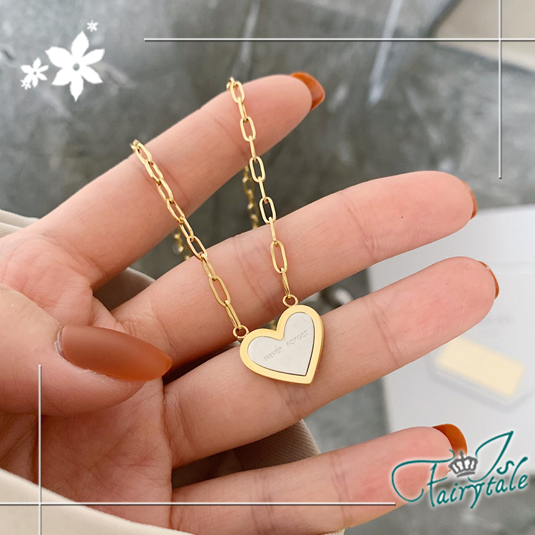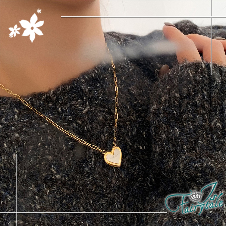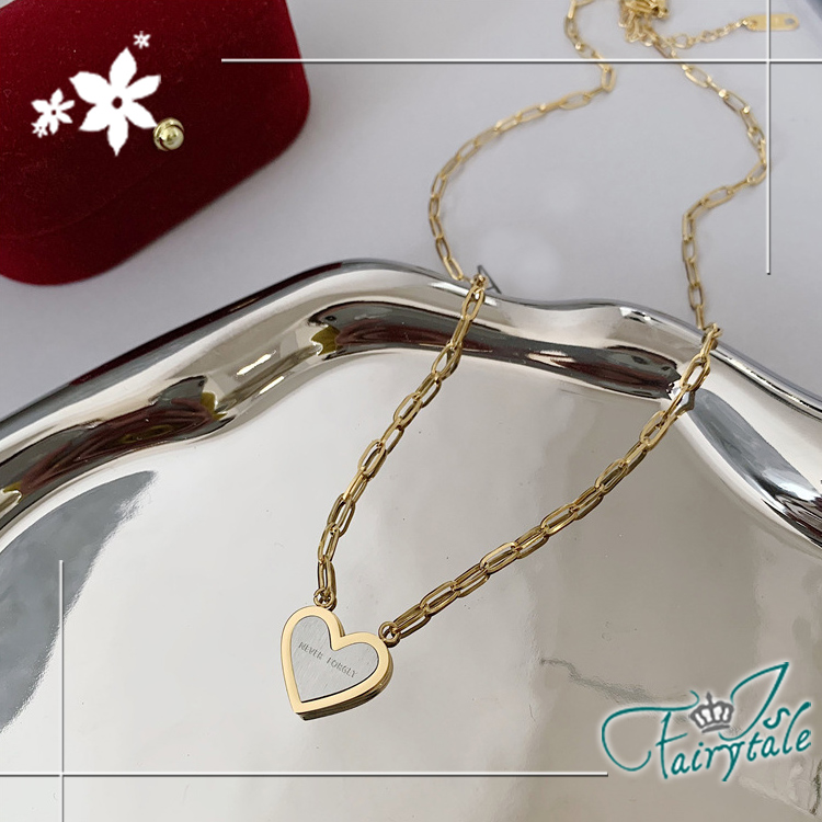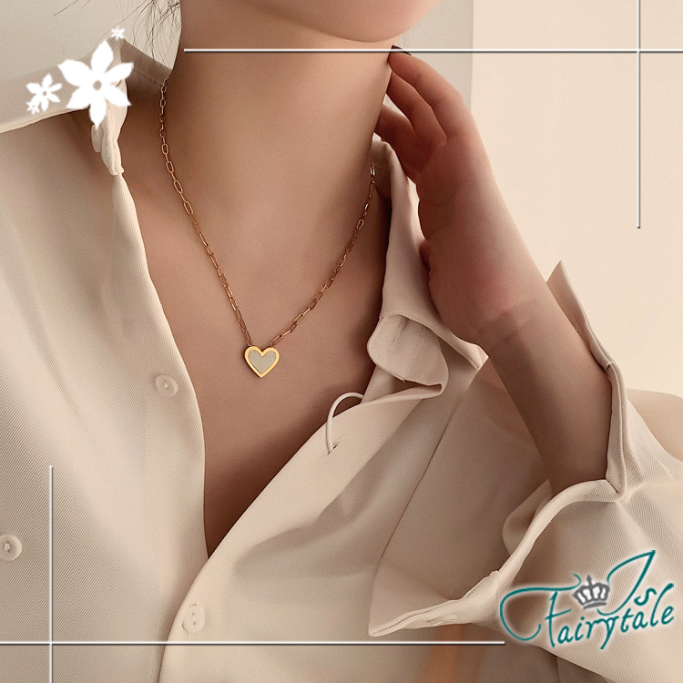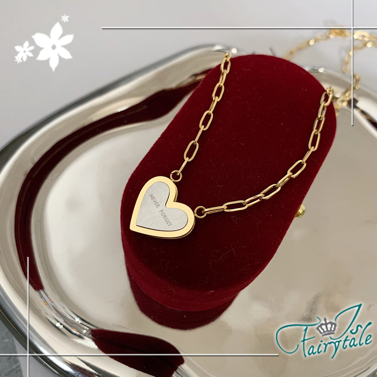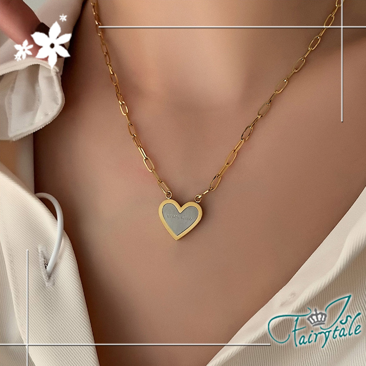 【伊飾童話】珍愛不忘 歐美撞色愛心鈦鋼鎖骨項鍊