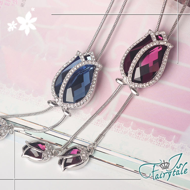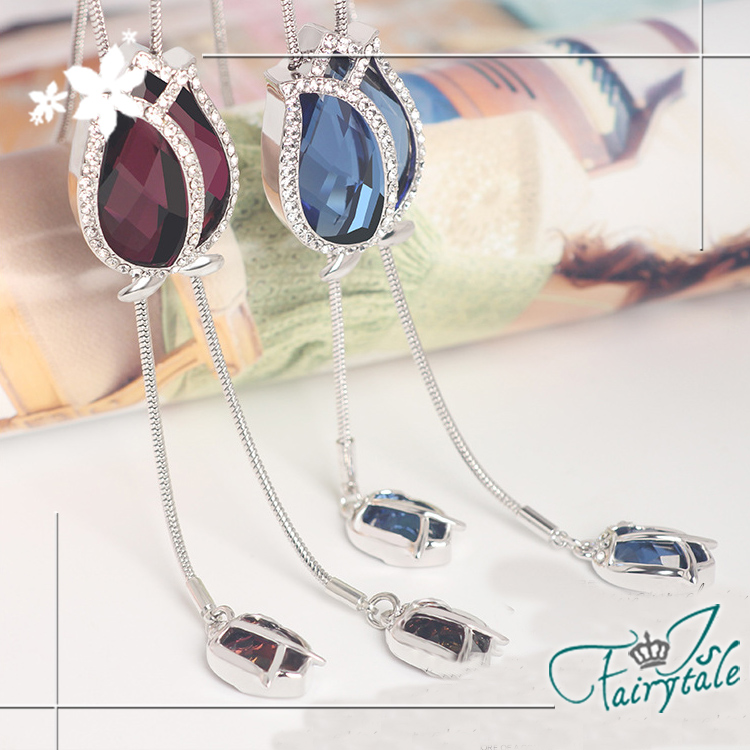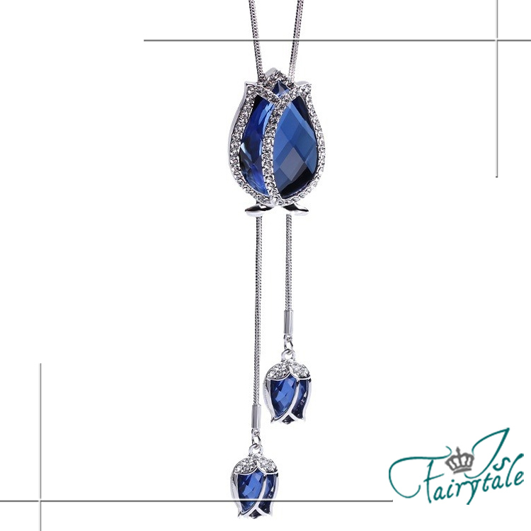 【伊飾童話】魅惑鬱金香 水晶鑽流蘇伸縮長鍊/藍