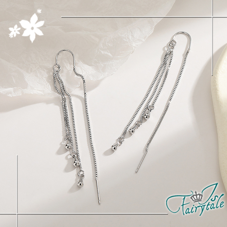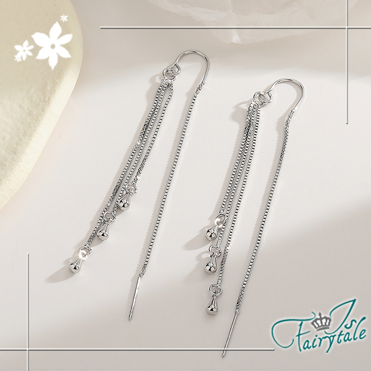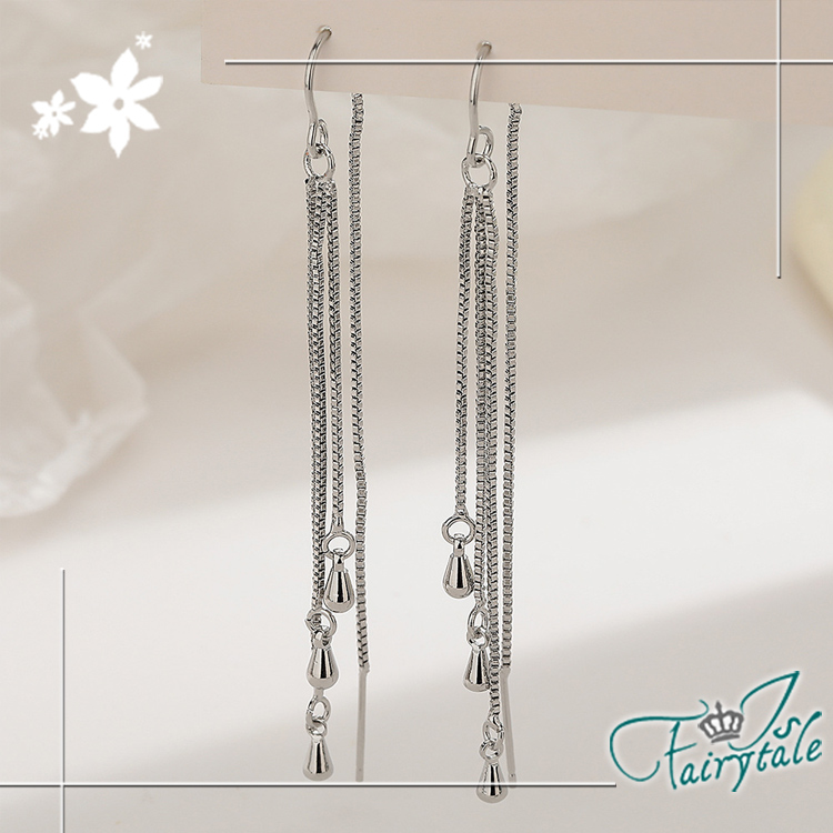【伊飾童話】流蘇水滴 層次長垂墜銅電鍍銀耳環