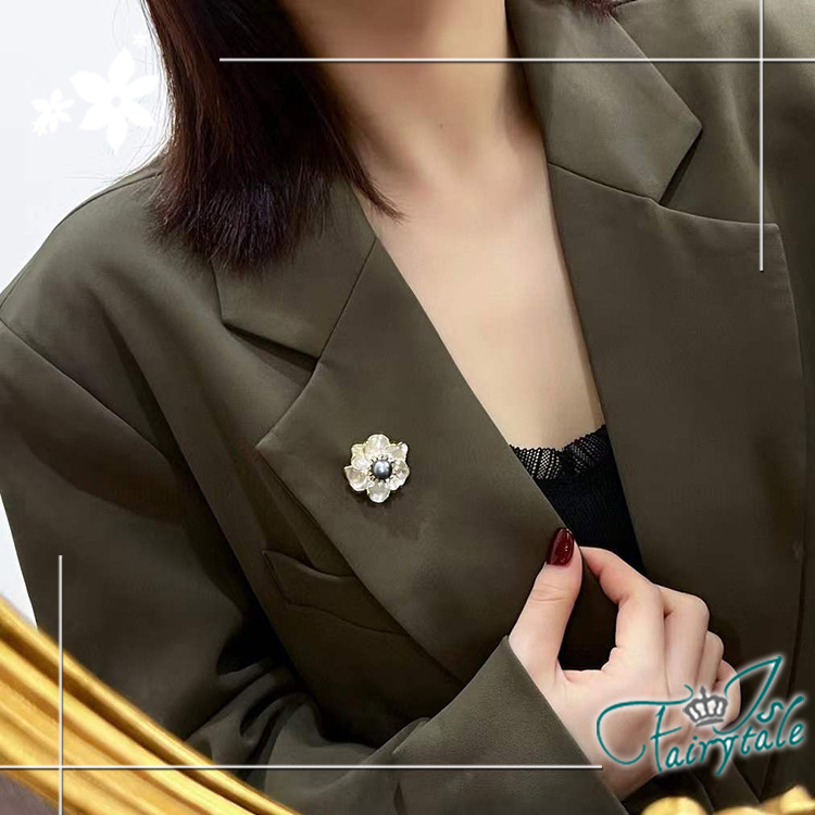 【伊飾童話】優雅山茶 珍珠花朵立體別針胸針/灰