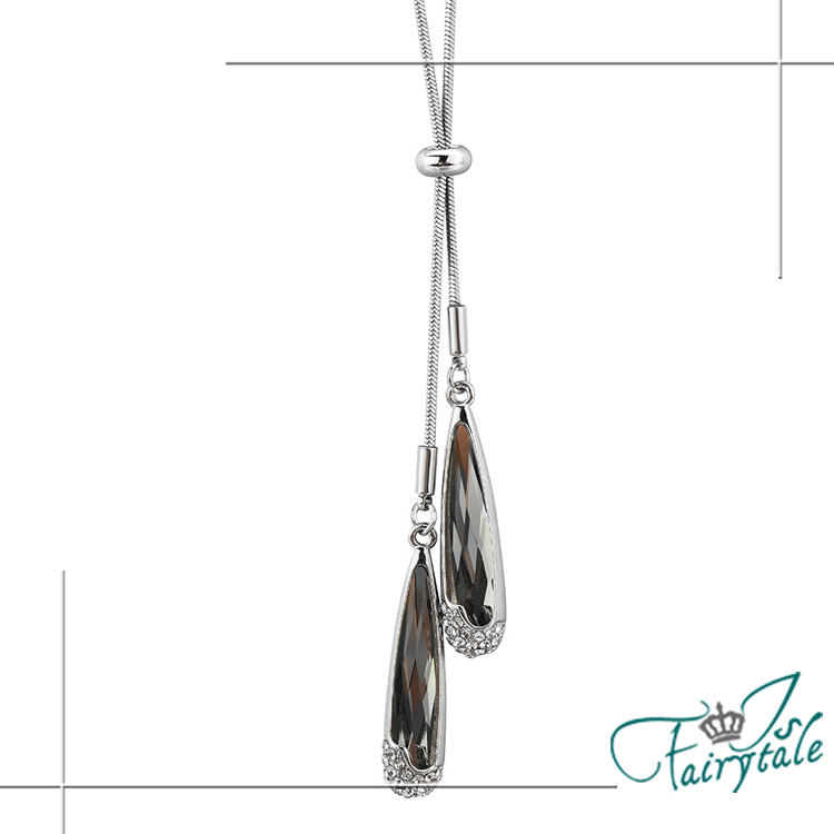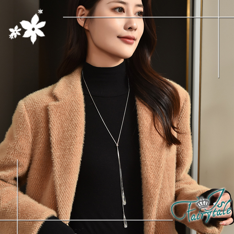 簡約水晶水滴光輝耀眼,時尚流蘇長鍊,可調整長度,