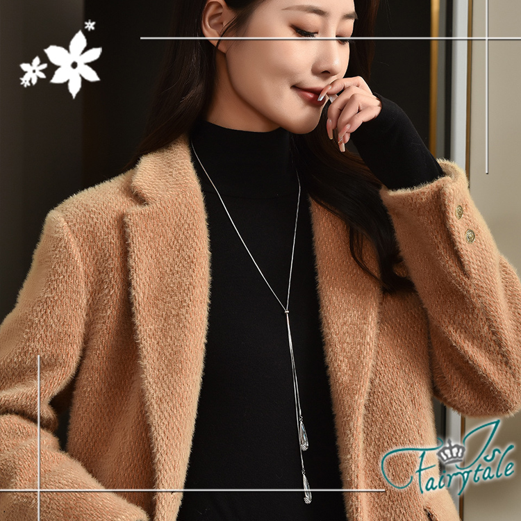 【伊飾童話】光輝水滴 氣質百搭水鑽流蘇伸縮長鍊