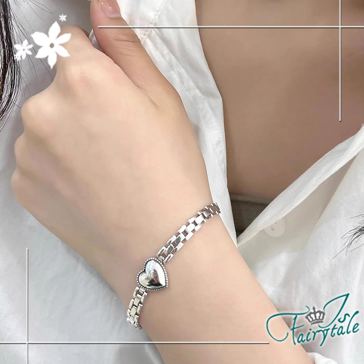【伊飾童話】復古之心 小眾錶帶設計鈦鋼手鍊/鋼色