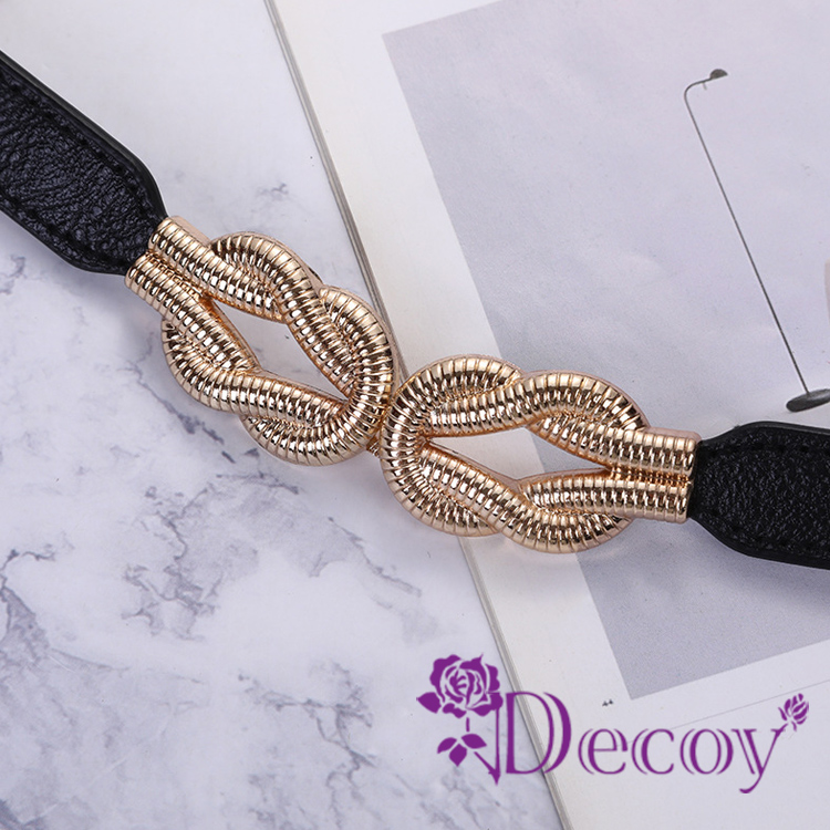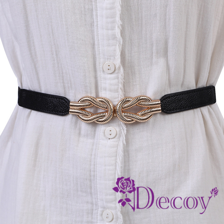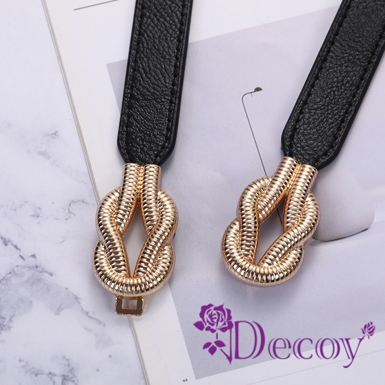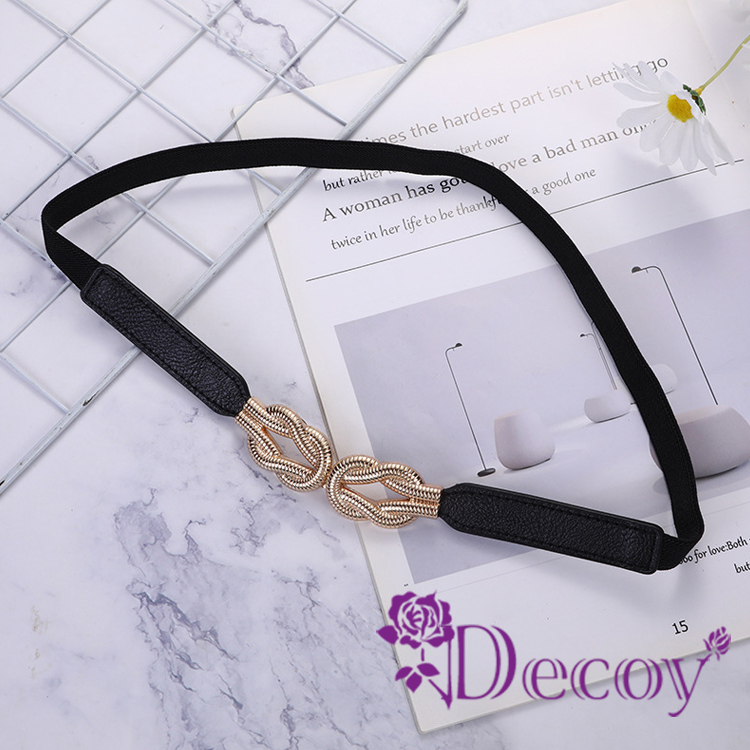 【Decoy】扭結相繫 彈力修身皮革細腰封/黑