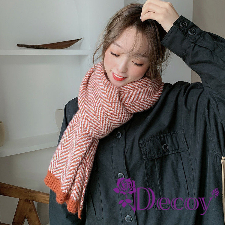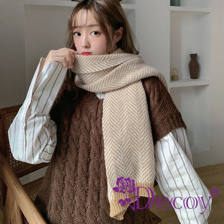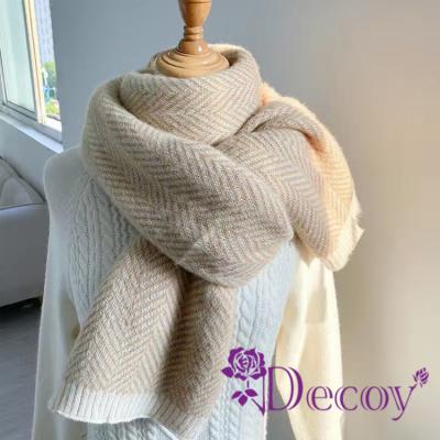 【Decoy】人字紋路 韓風保暖披肩加厚圍巾/卡其米