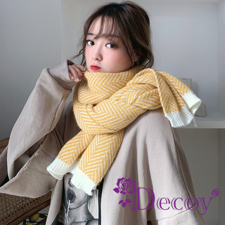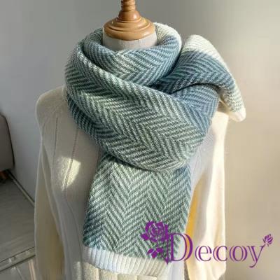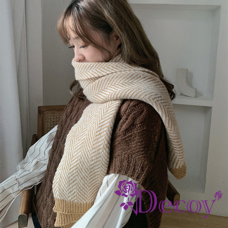 【Decoy】人字紋路 韓風保暖披肩加厚圍巾/綠白