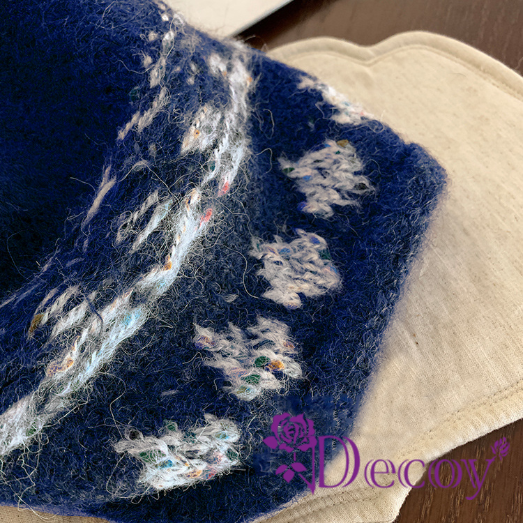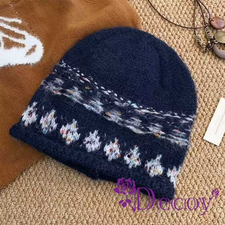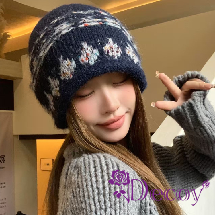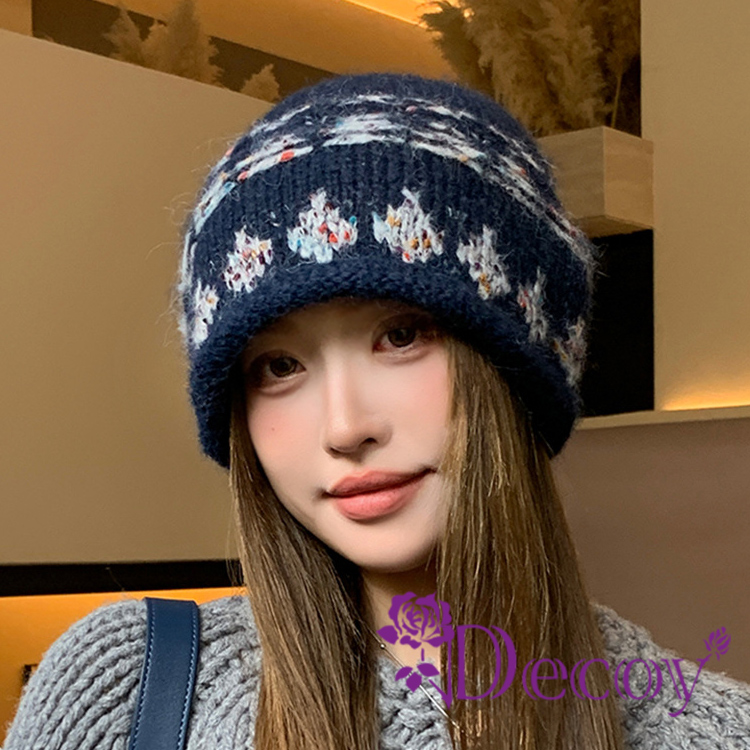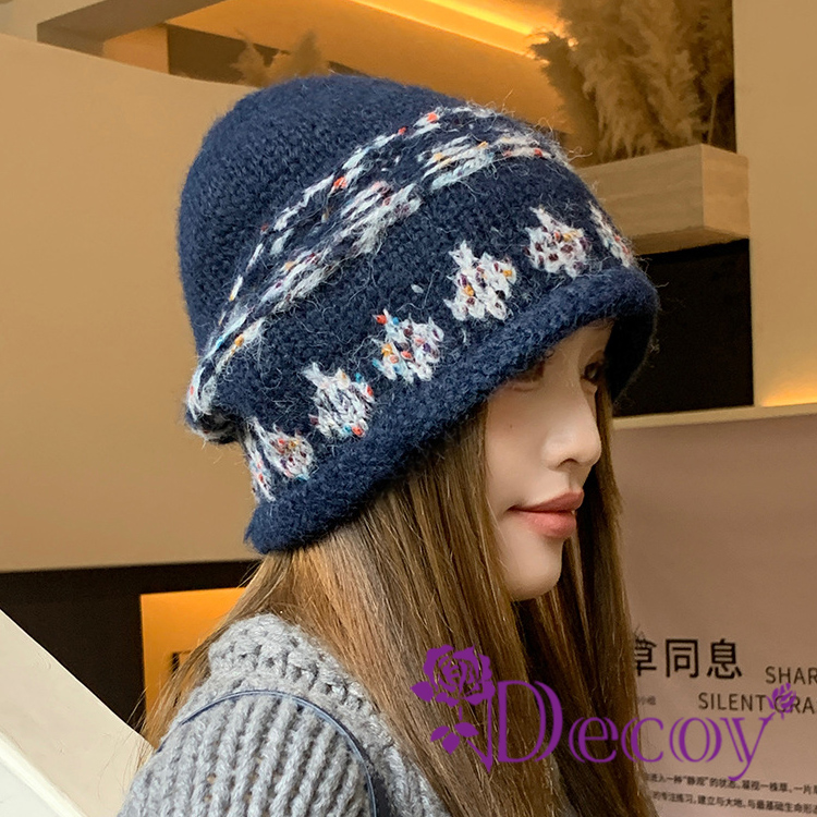 【Decoy】復古韓系 針織緹花包頭毛線帽/藏青色