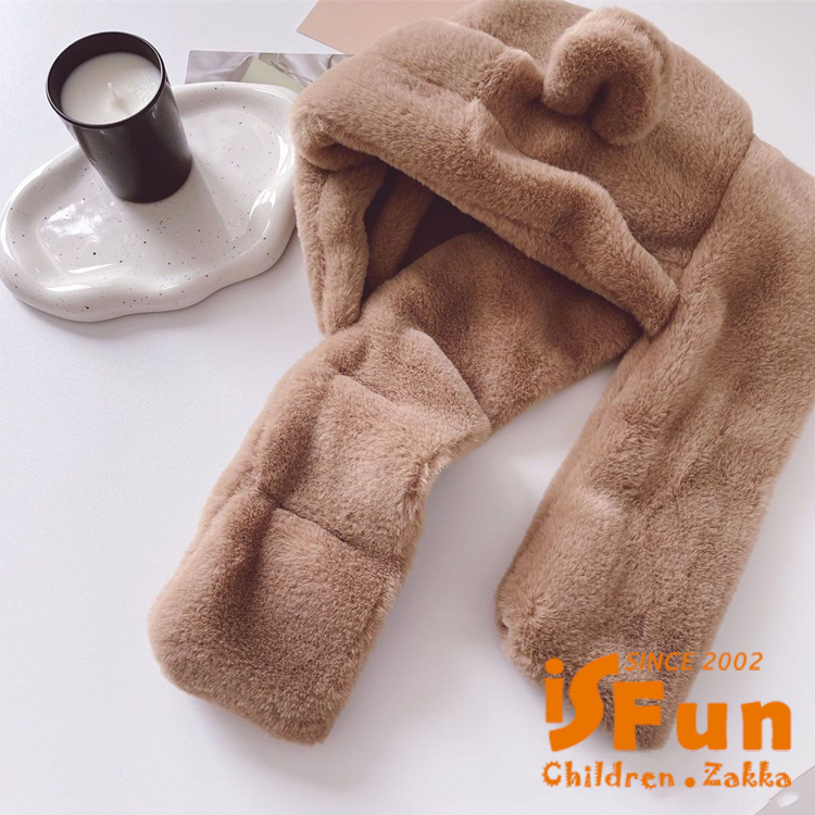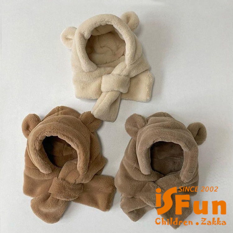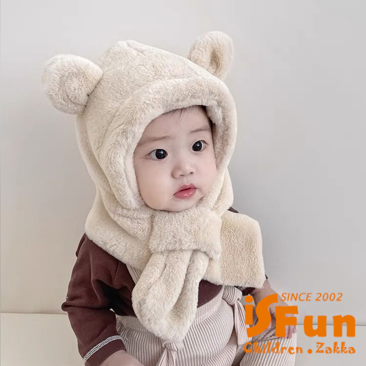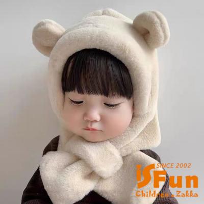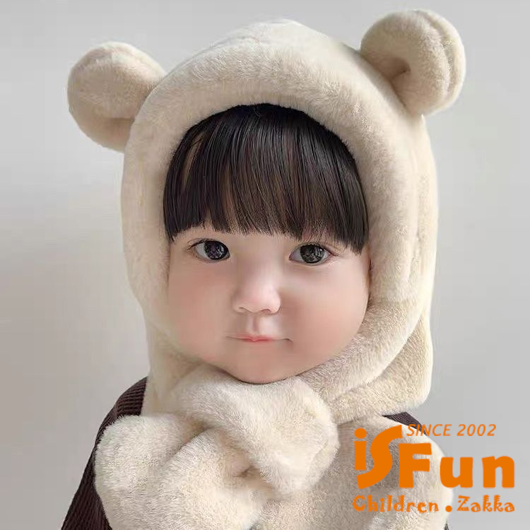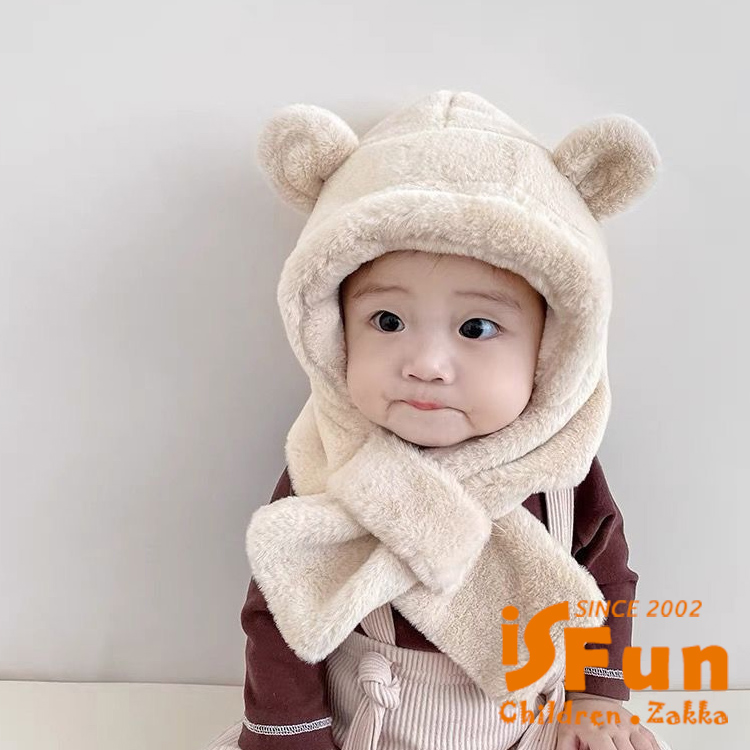 【iSFun】時尚萌娃 6個月-3歲連帽圍脖一體保暖童帽/米色小熊