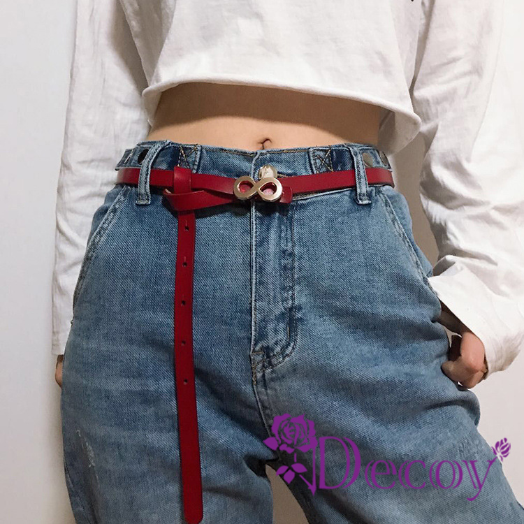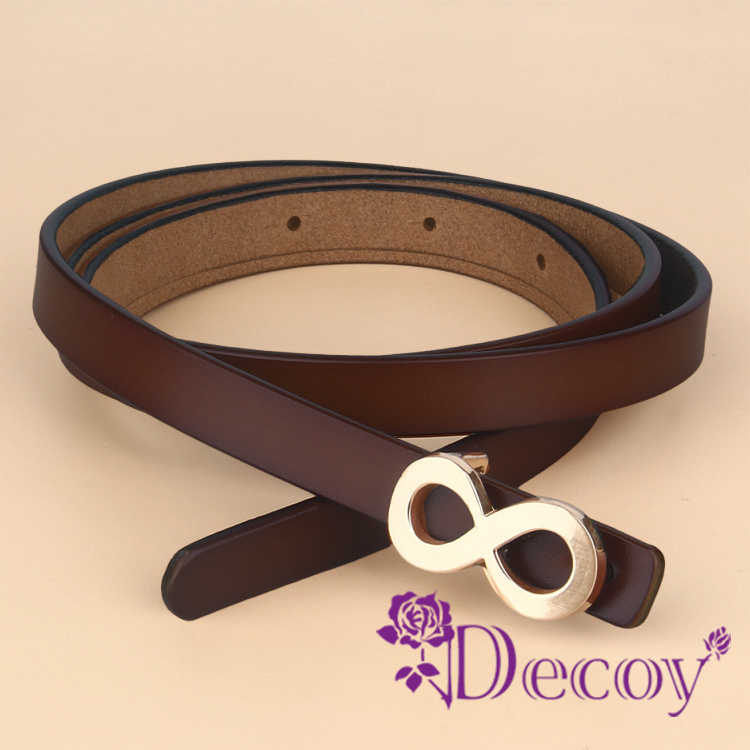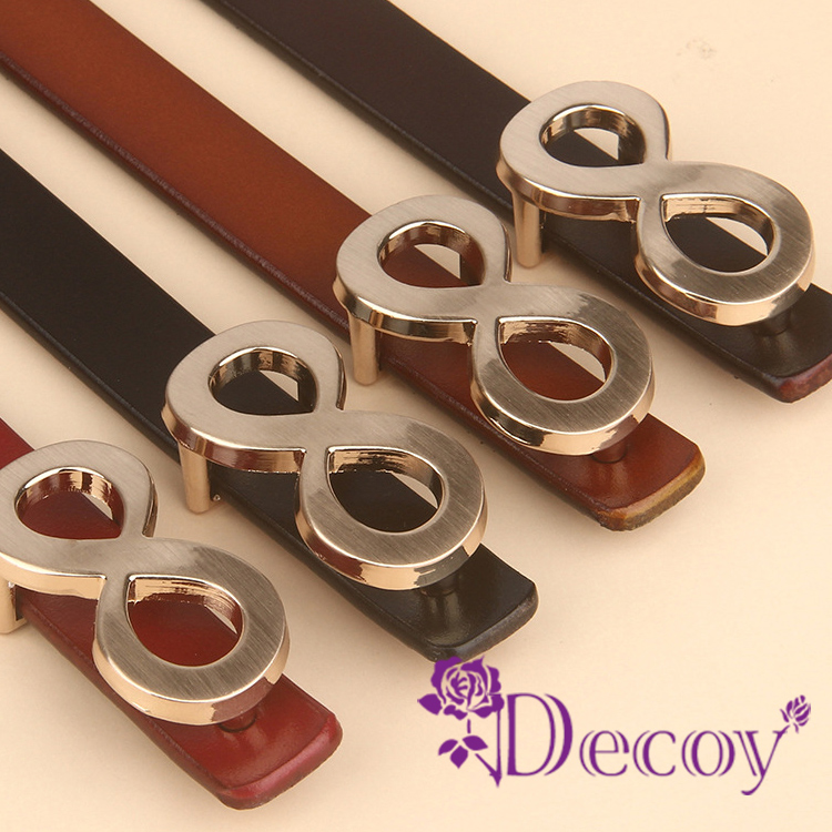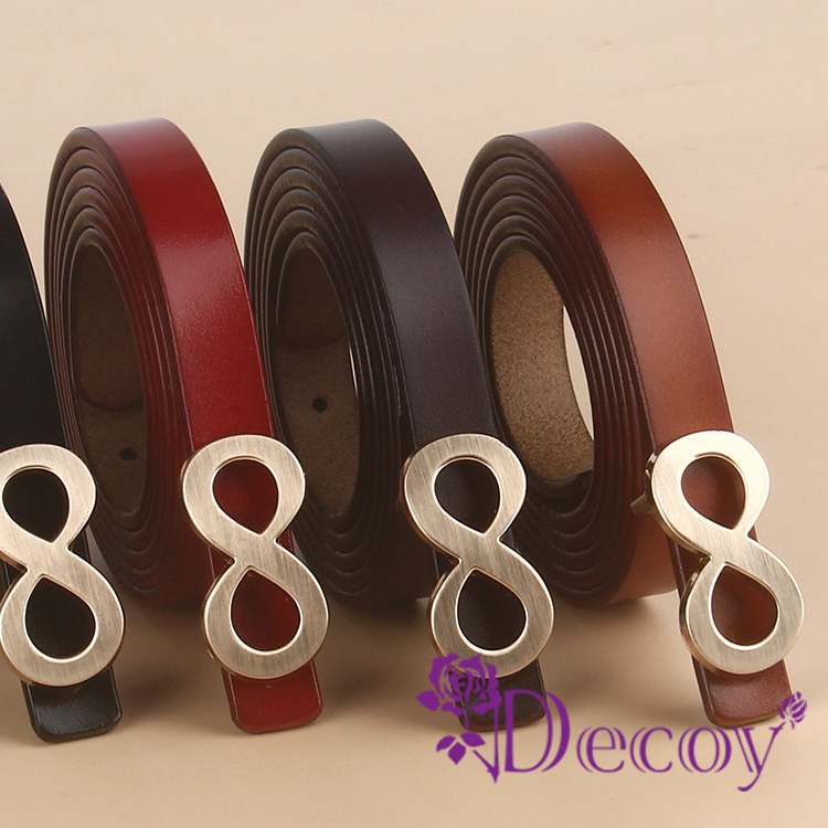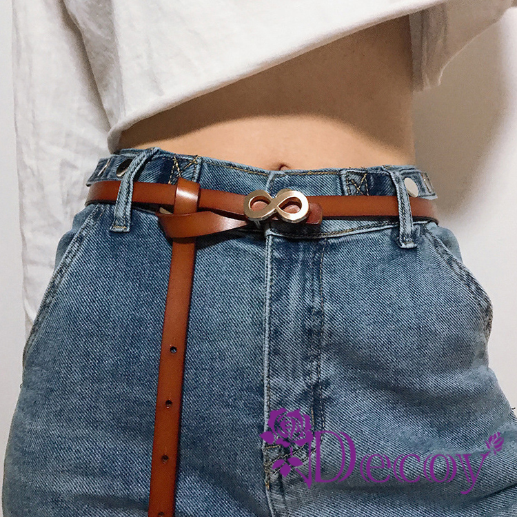 簡約真皮細皮帶,搭配八字造型金屬扣頭,