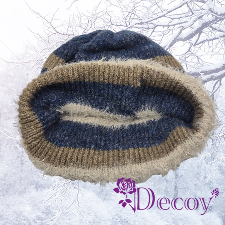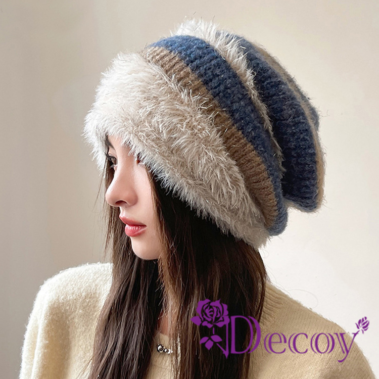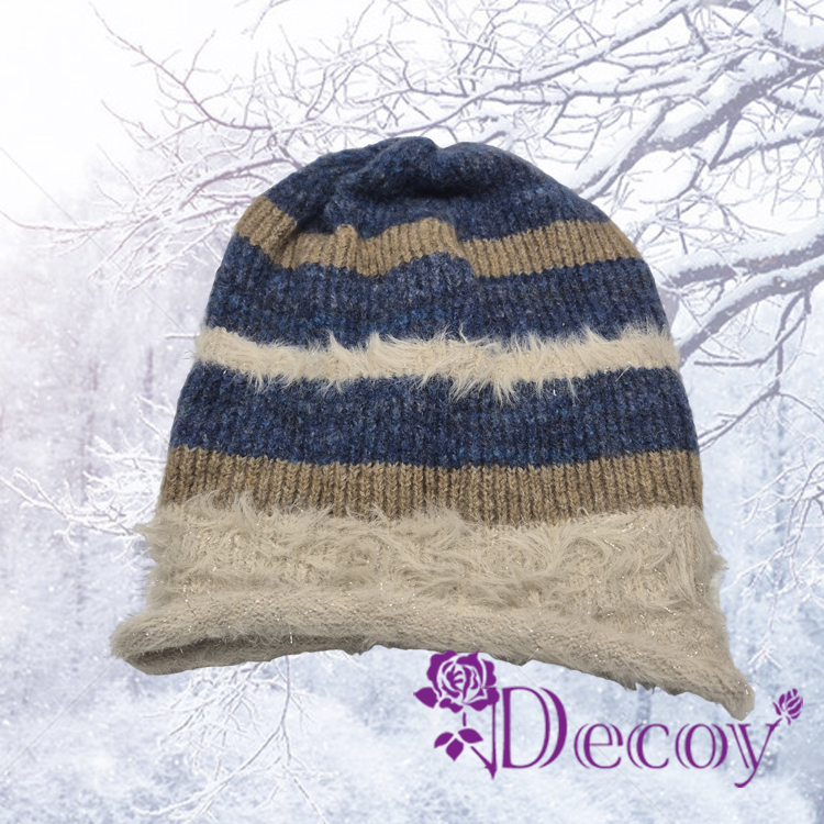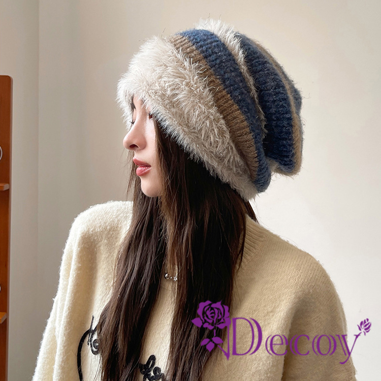 【Decoy】時尚毛絨 顯臉小針織包頭推推毛帽/藍色
