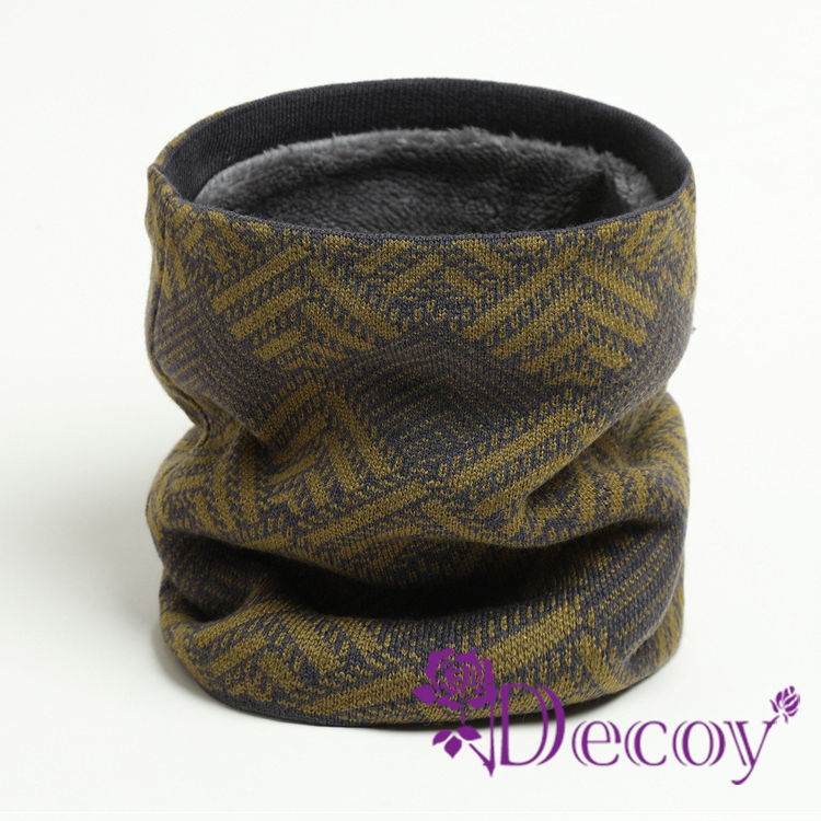 【Decoy】交錯菱格 雙層加絨加厚針織百搭圍脖套/灰綠