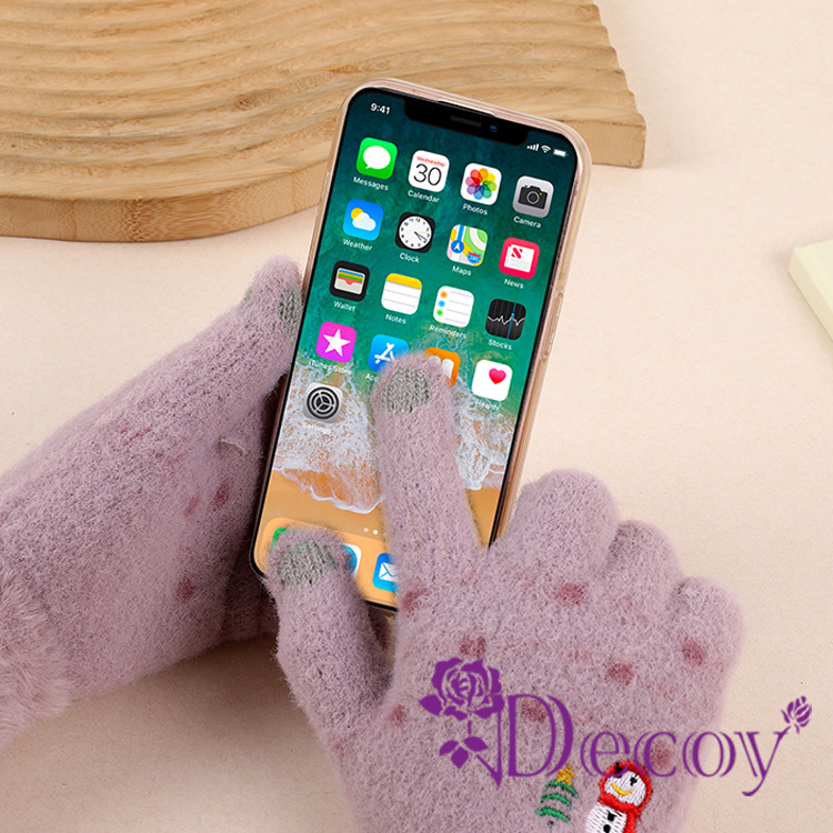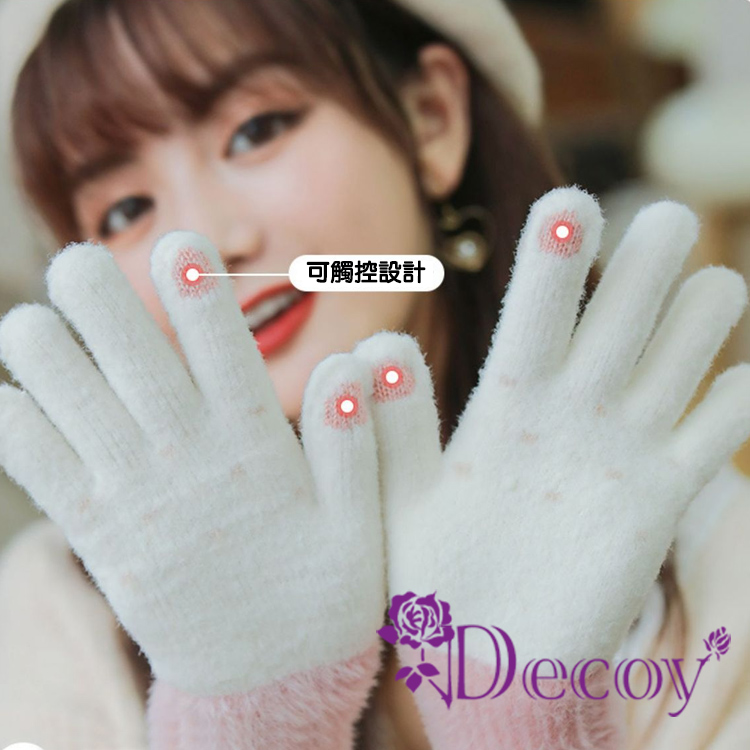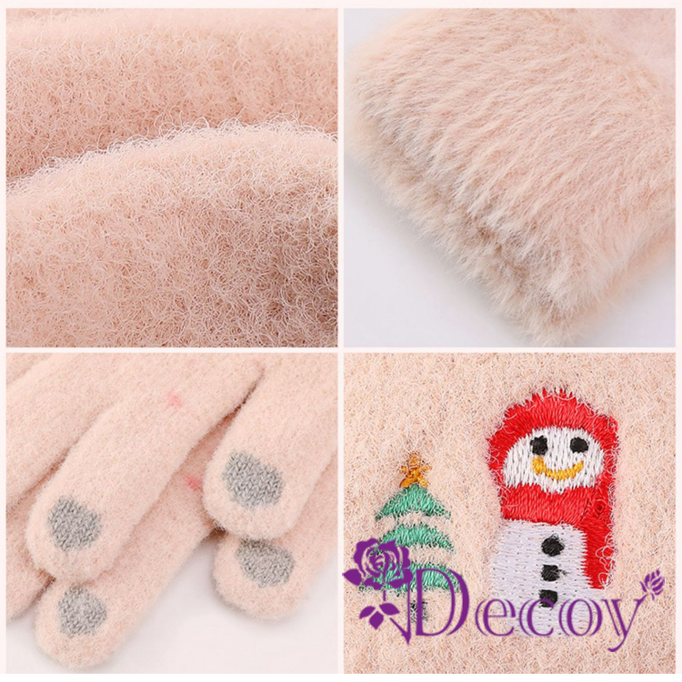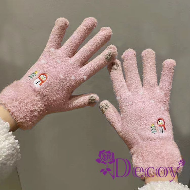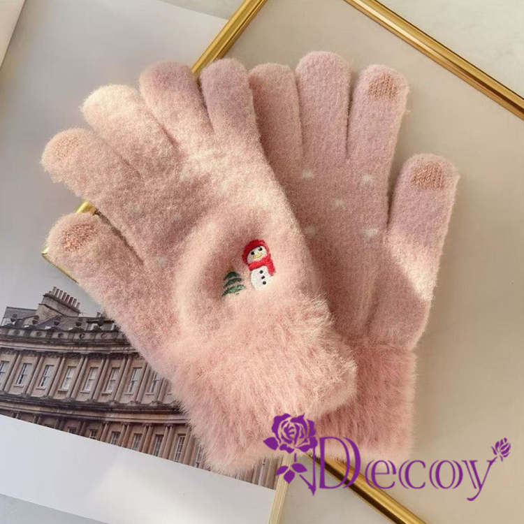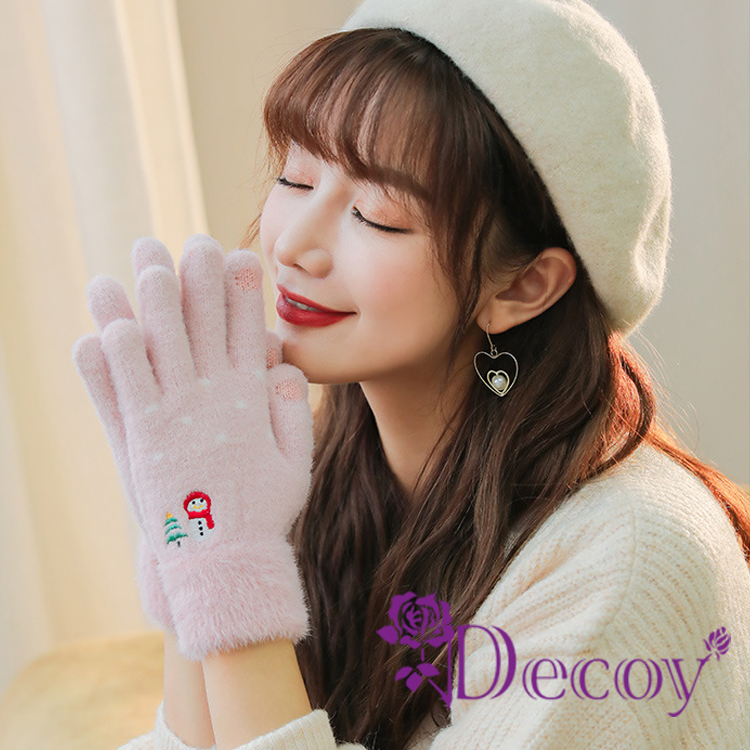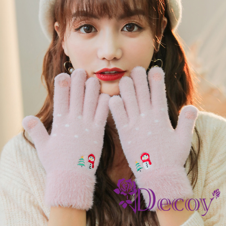 【Decoy】微笑雪人 觸控彈性仿羊絨保暖手套/粉