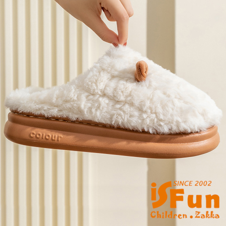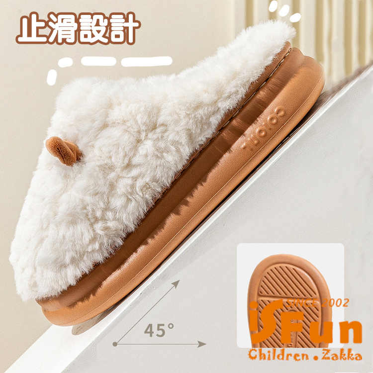 【iSFun】小耳朵河馬 厚底防滑秋冬保暖室內拖鞋/咖啡4445號