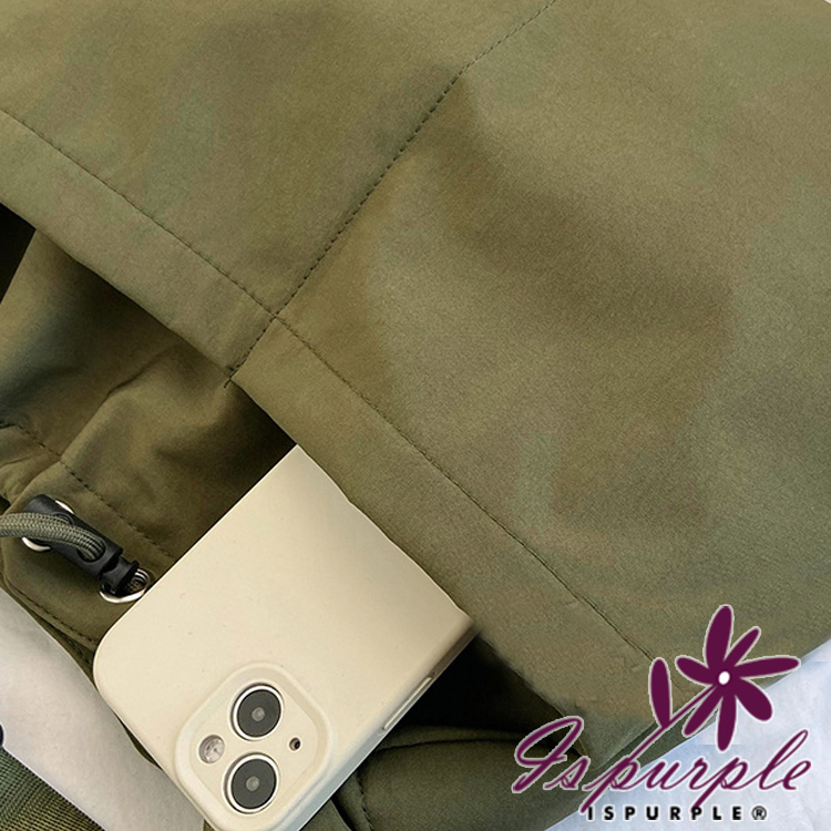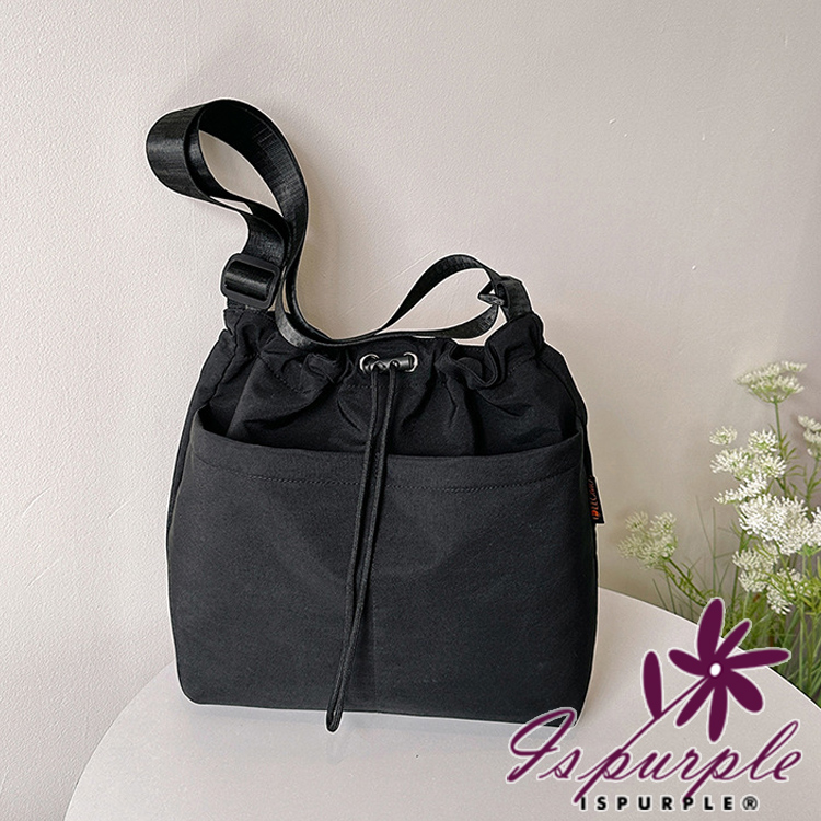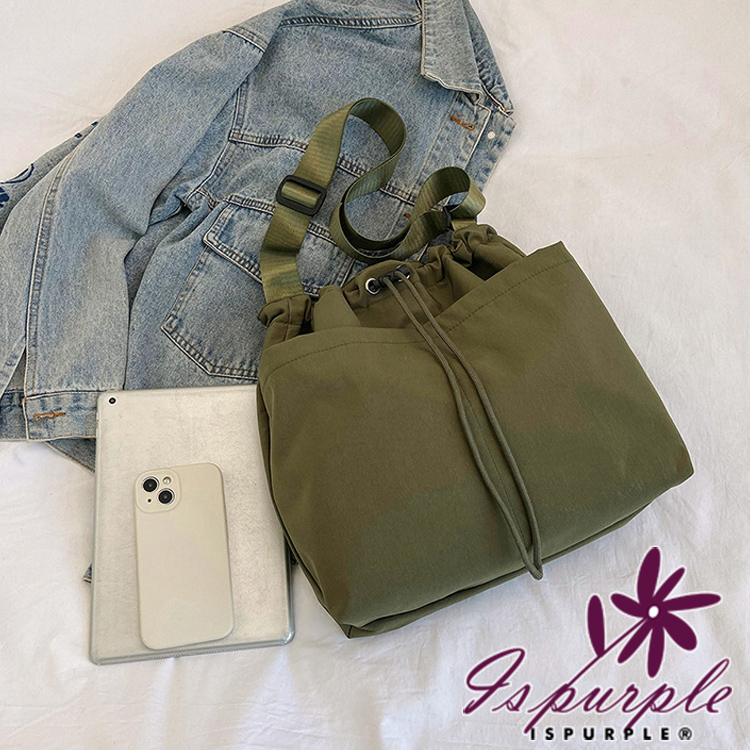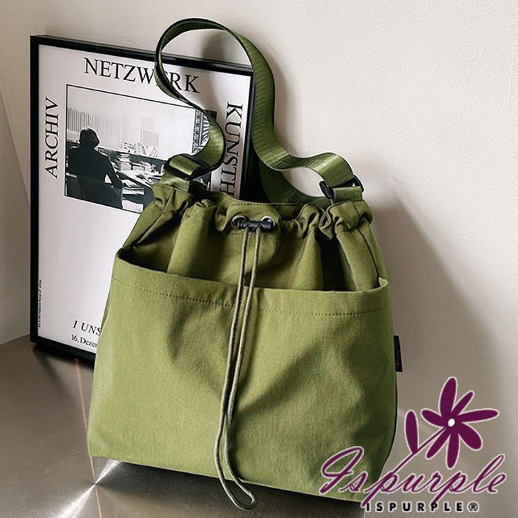 【iSPurple】優雅知性*素面單肩抽繩綁帶水桶包/綠