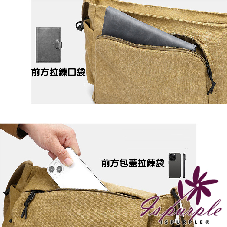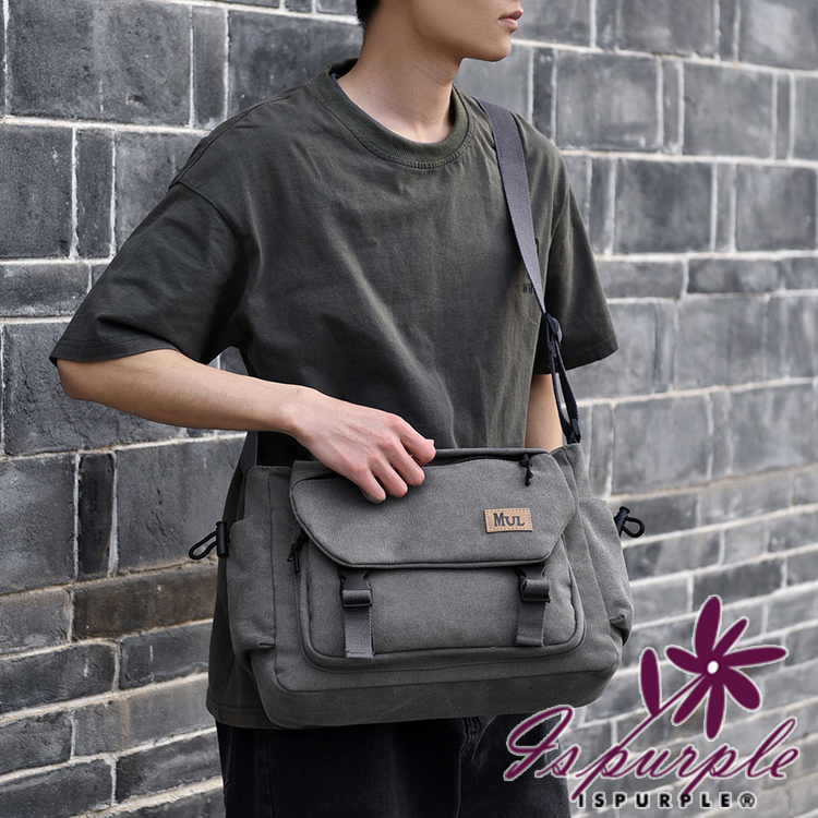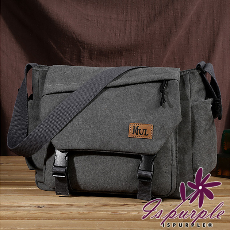 【iSPurple】時尚潮流 大容量帆布單斜肩背郵差包/灰色