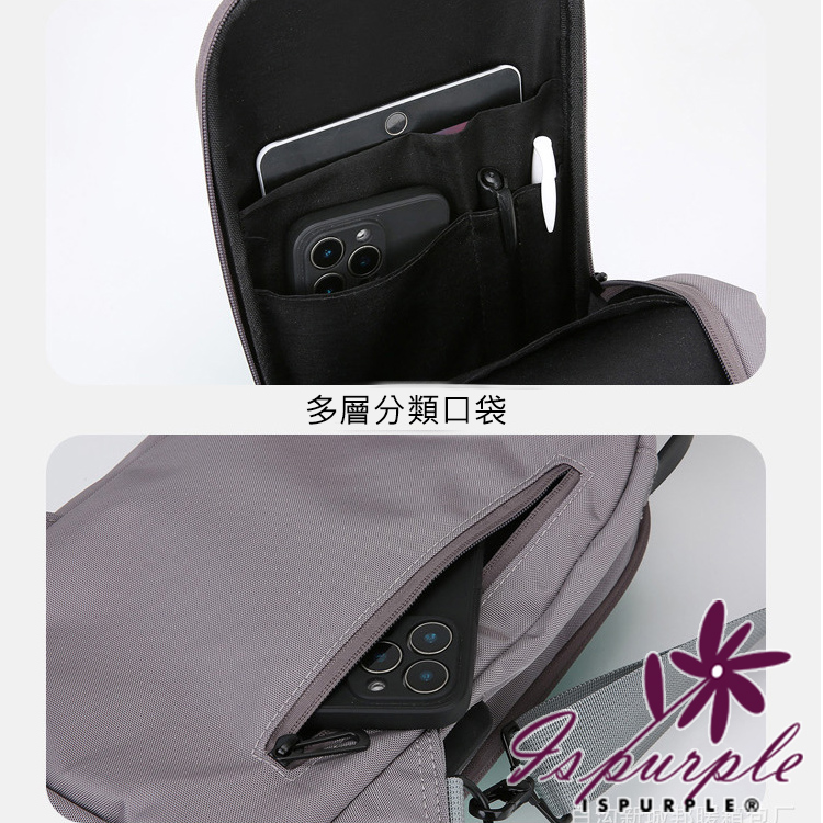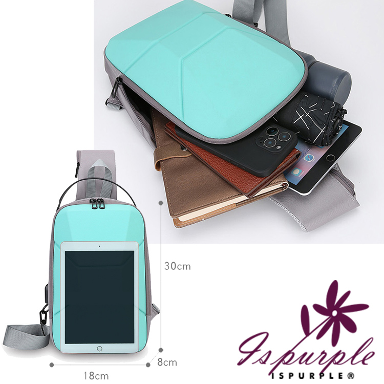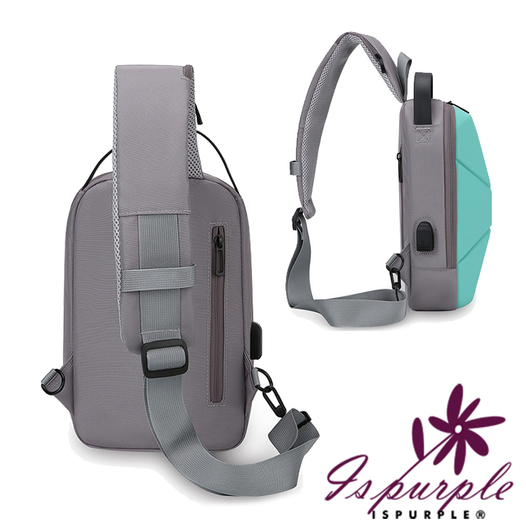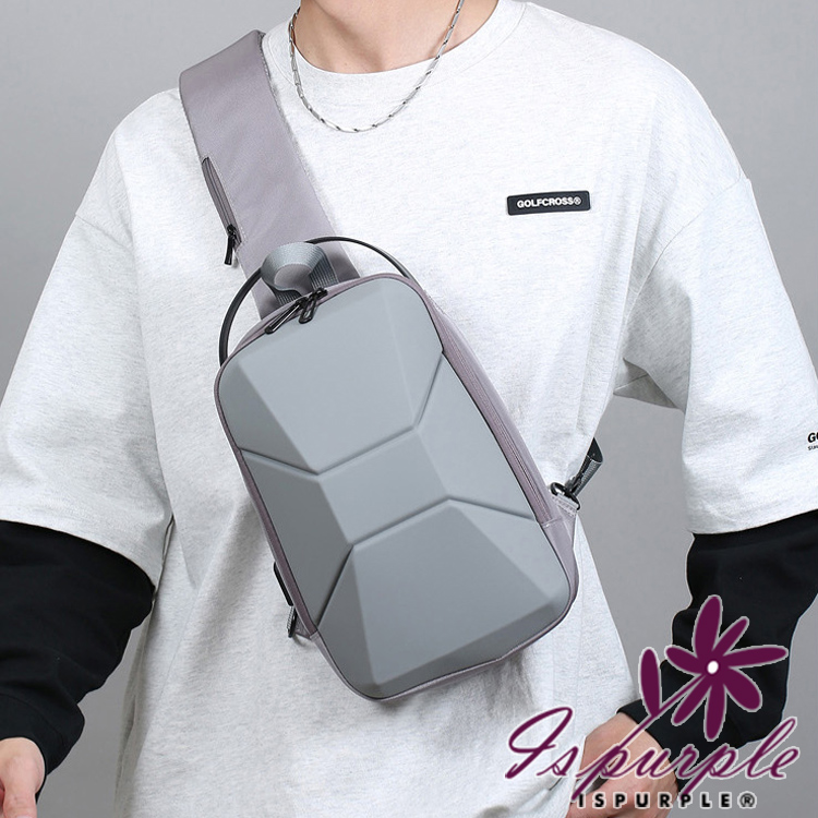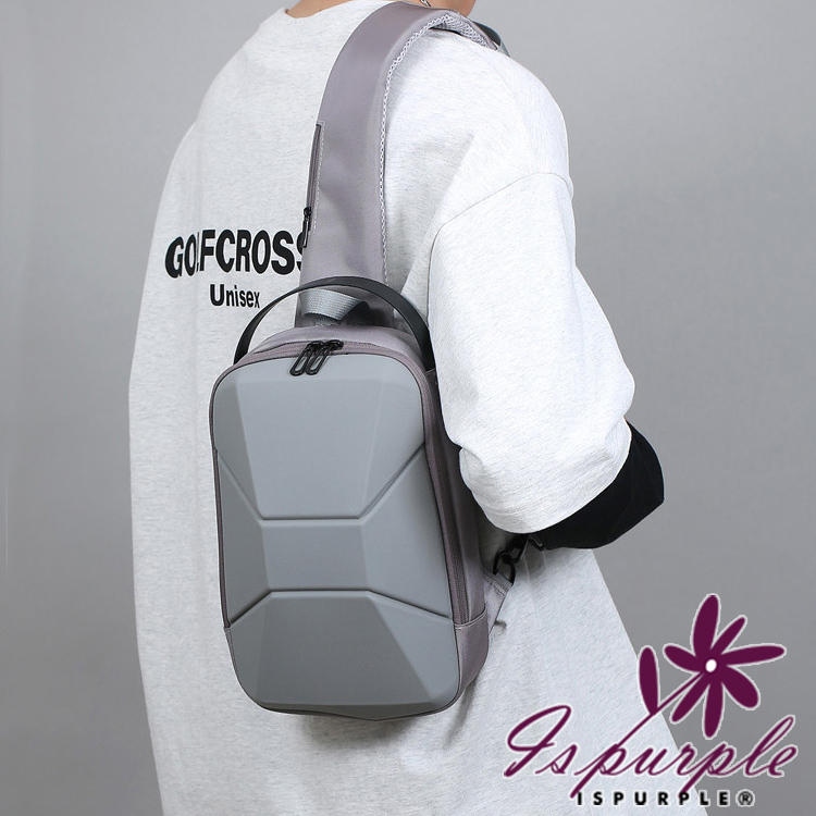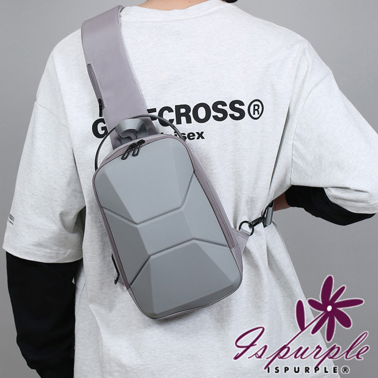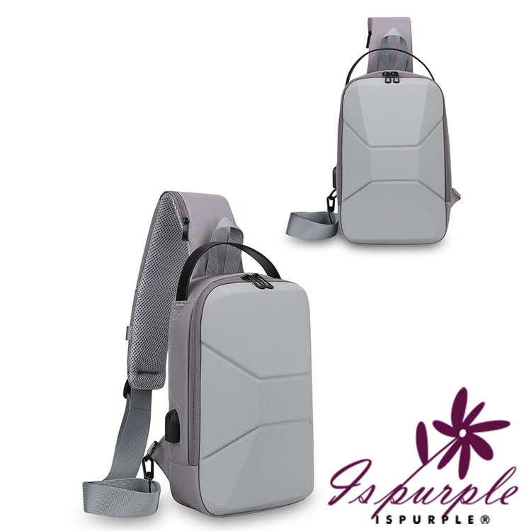 【iSPurple】硬殼潮流 輕便充電耐用斜垮單肩胸包/灰色