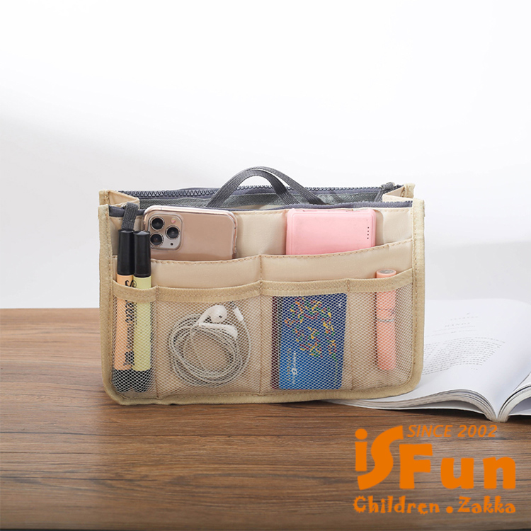 【iSFun】空氣舖棉 防撞包中袋收納包/卡其色