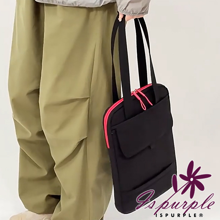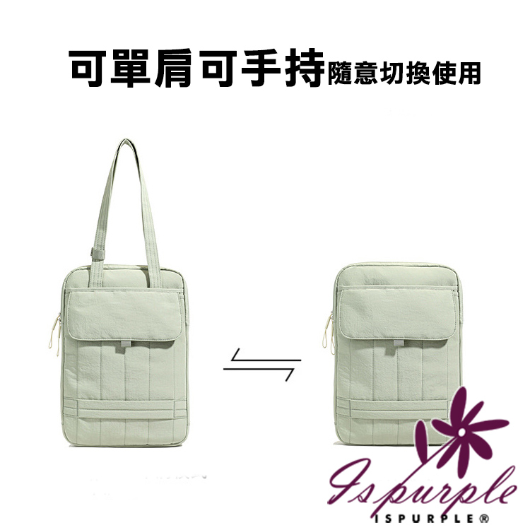 【iSPurple】清新時尚 鋪棉抗震手提手拿多功能電腦托特包/黑
