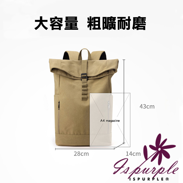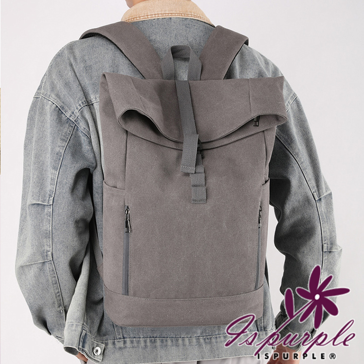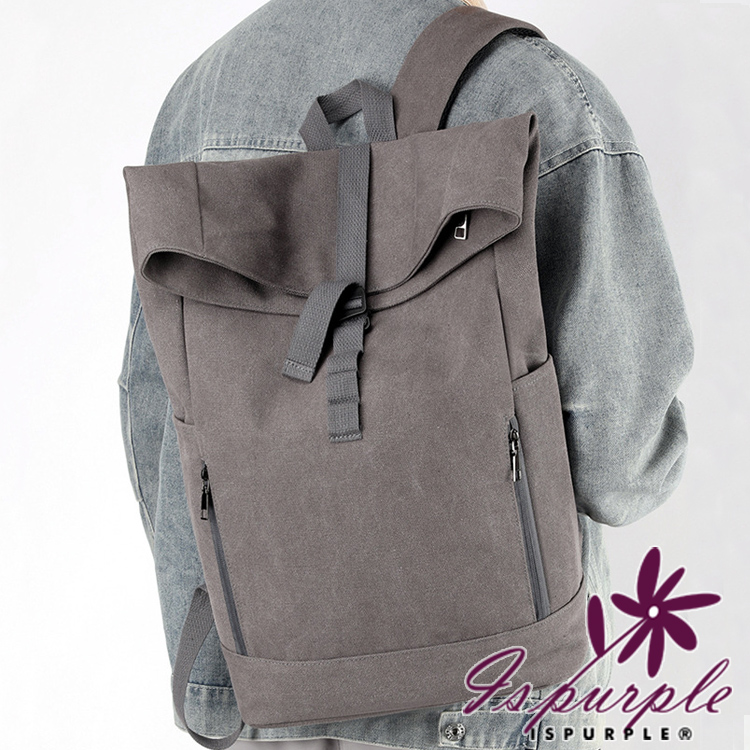 【iSPurple】商務休閒 簡約帆布捲蓋雙肩電腦包/灰色