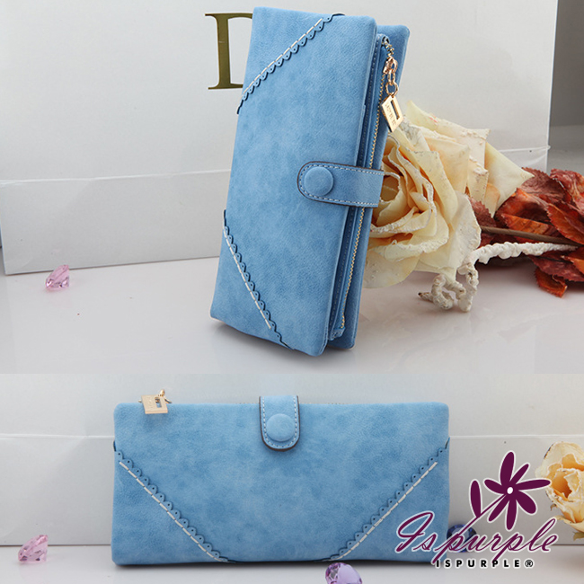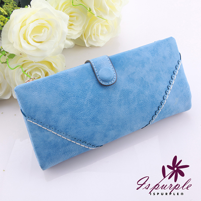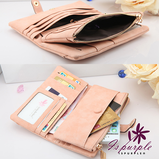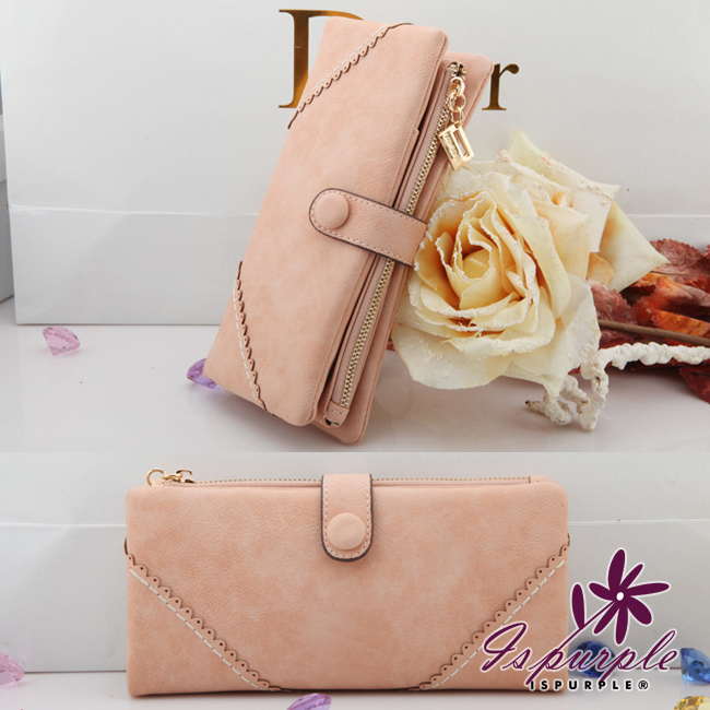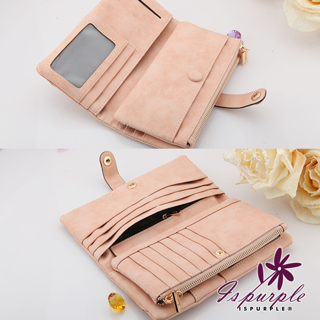 【iSPurple】菱形緹花*磨砂皮革手拿長夾/粉