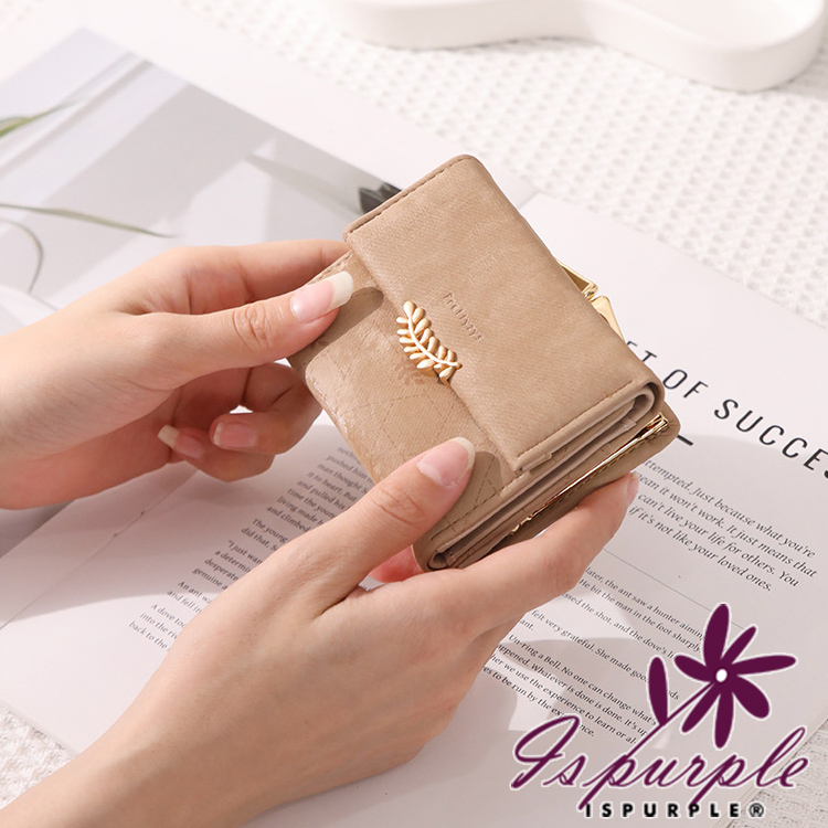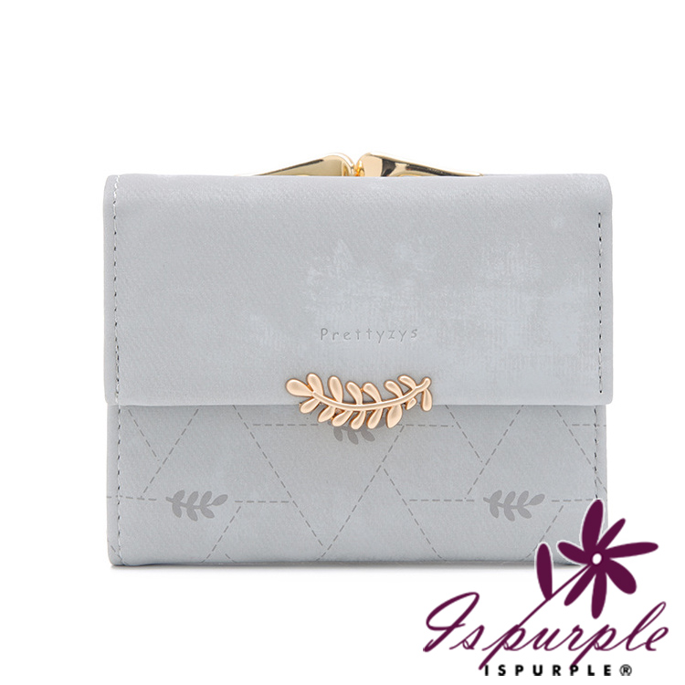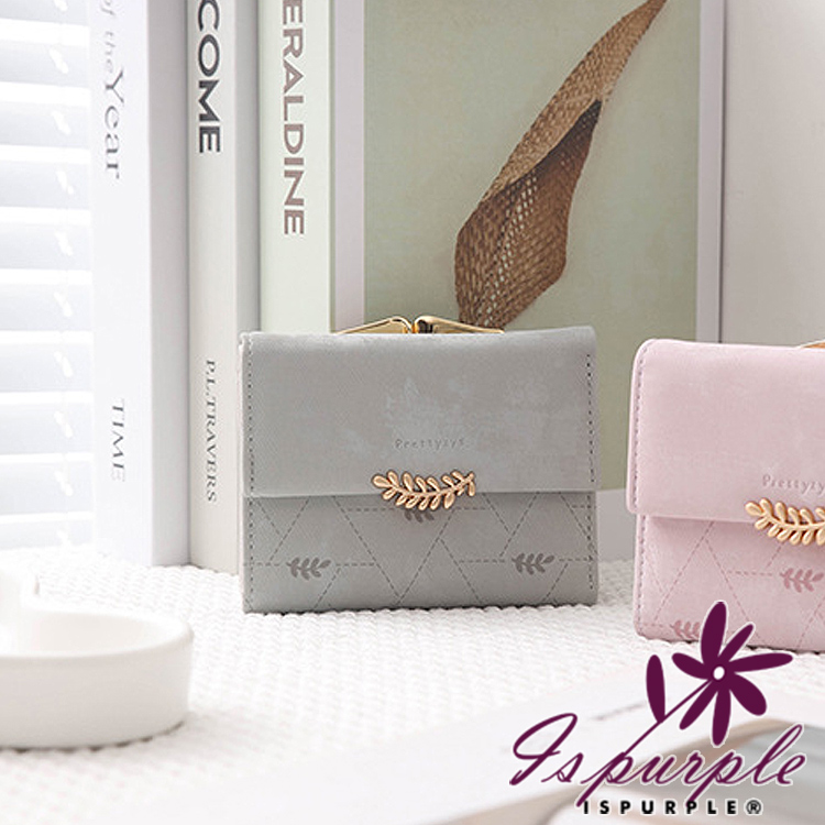 【iSPurple】稻穗印壓 印花霧面麂皮三折零錢短夾/灰