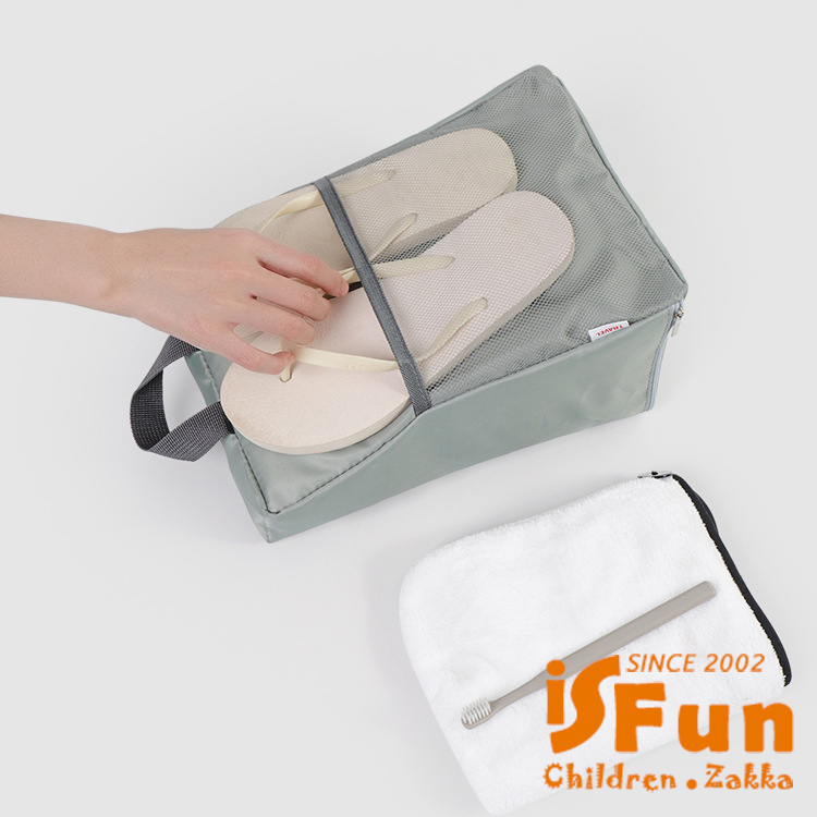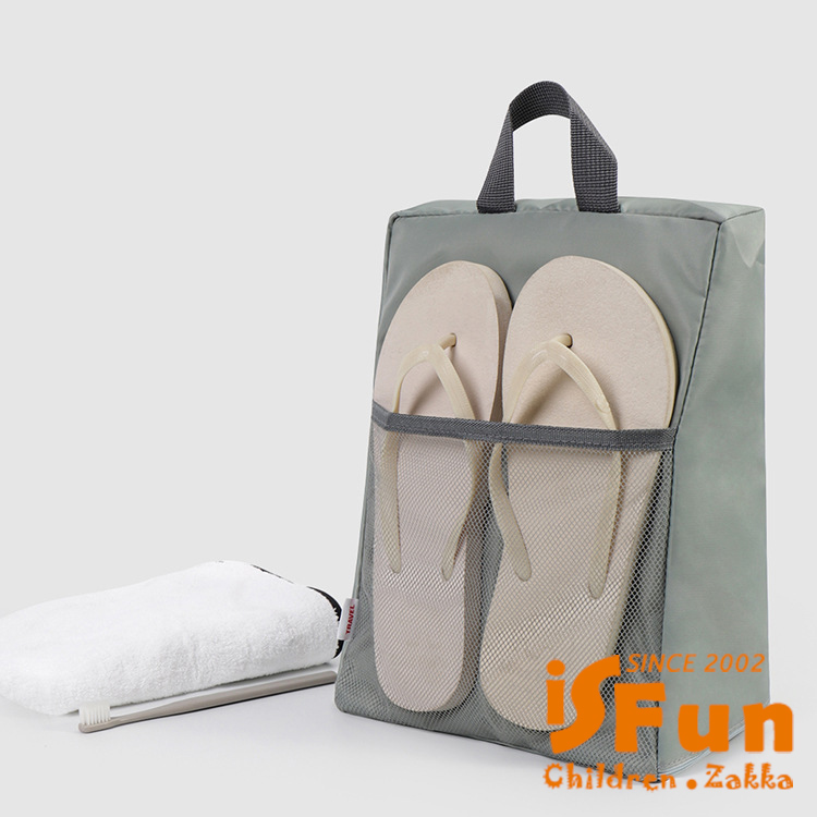 【iSFun】三角收納 可掛防潑水旅行外出鞋袋/灰綠